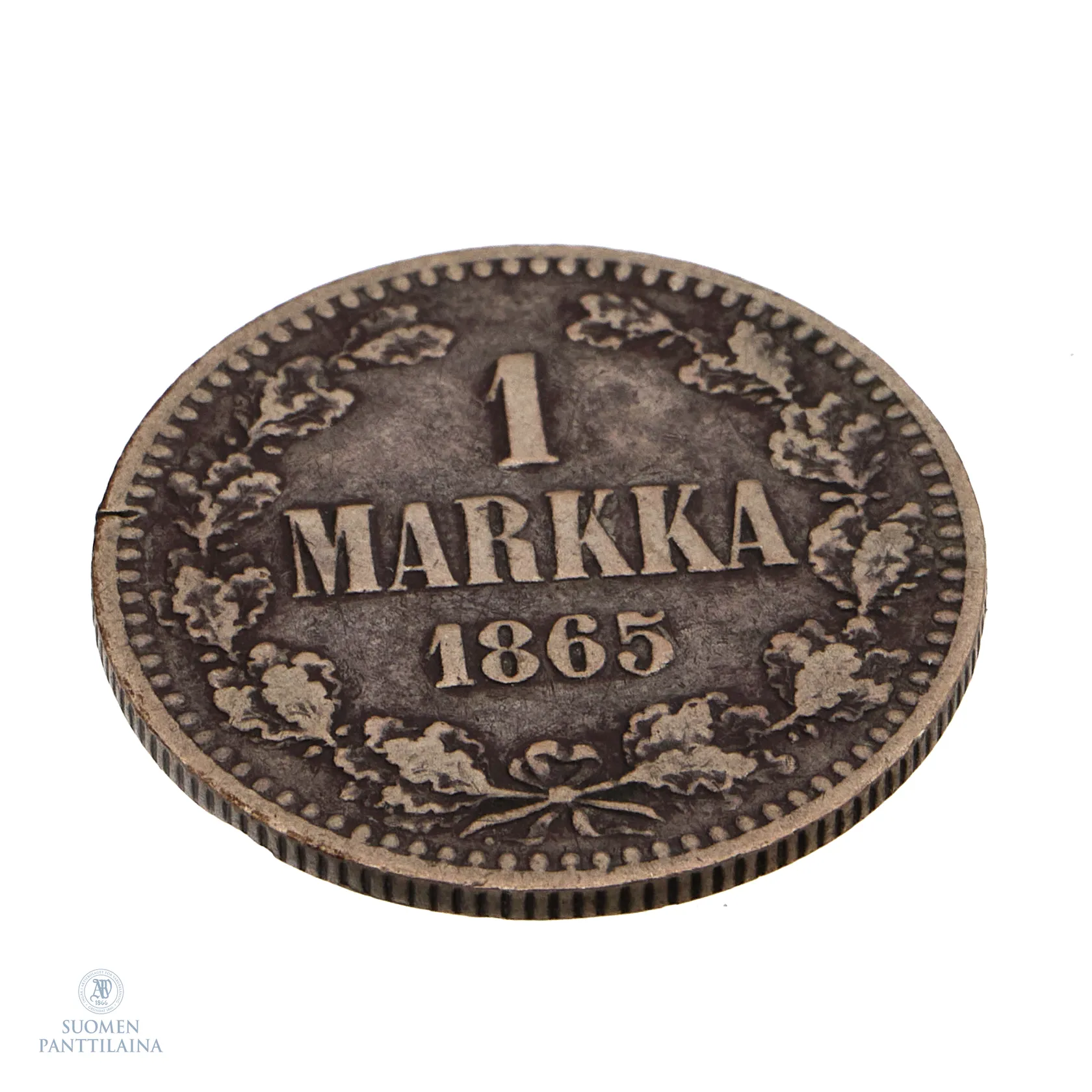 Kolikko, 1 Markka 1865, 868h, Paino: 5,1 g