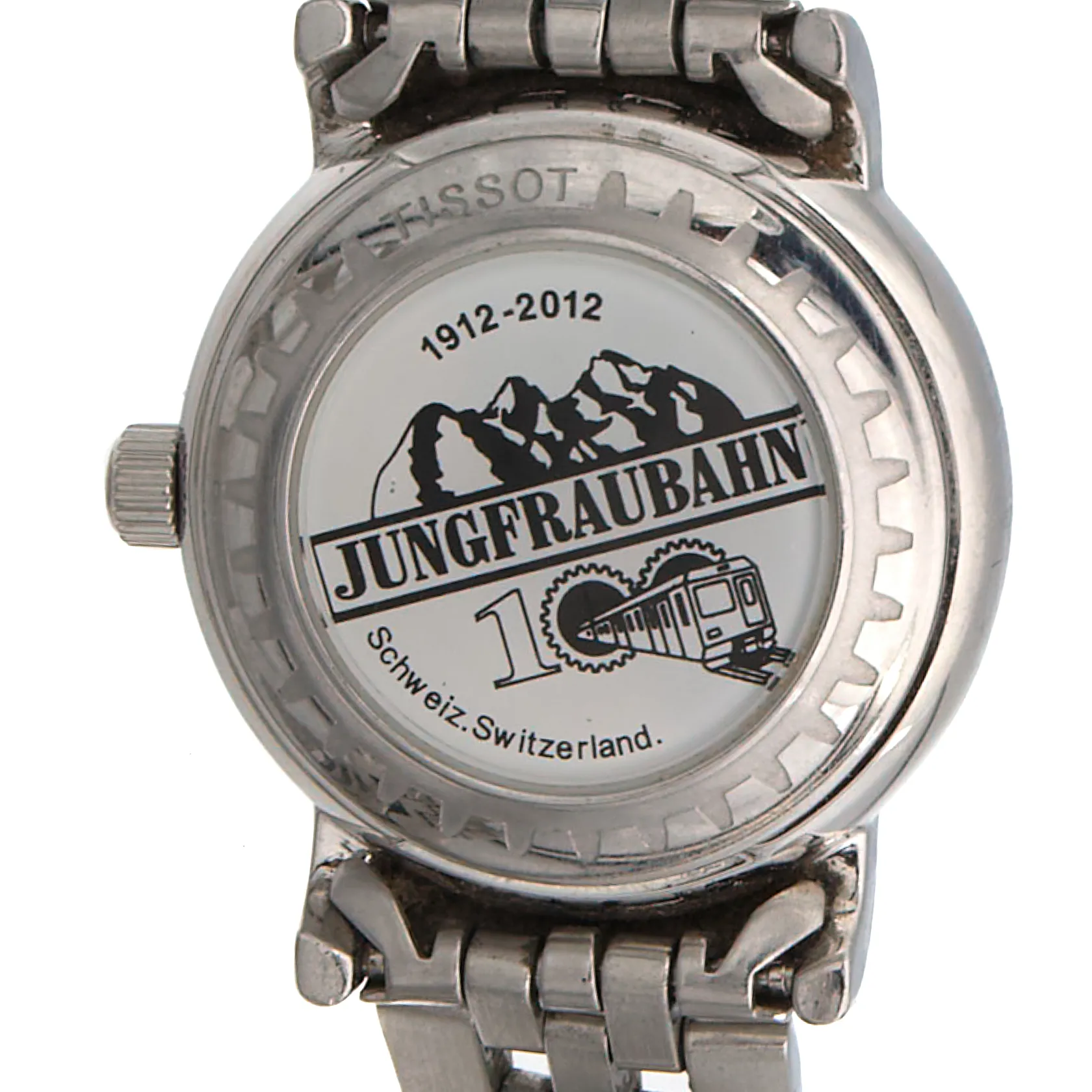 Teräsrannekello Tissot, 1912-2012 Jungfraubahn 100 Limited Edition, automaatti, taulun Ø 26mm, hihnan pituus 155mm. Vaatii huoltoa! Paino: 0 g