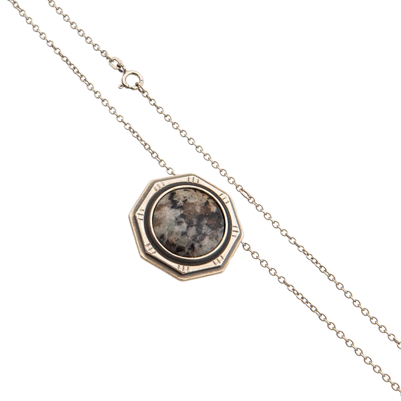 Kivikaulakoru, Kalevala Koru, Viapori 250 vuotta solkiriipus, vihergraniitti, ketjun pituus 60cm, riipuksen korkeus 31mm, 925br, Paino: 20,1 g