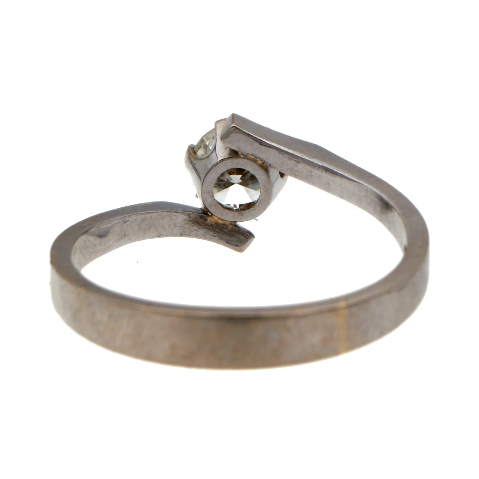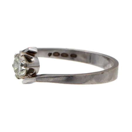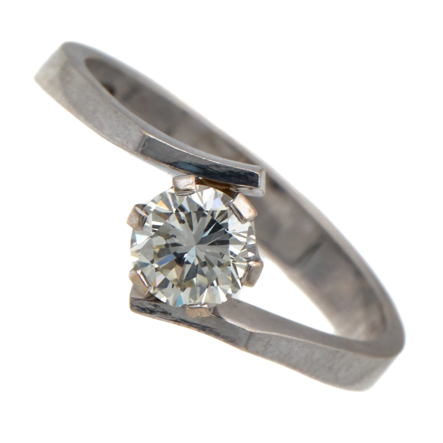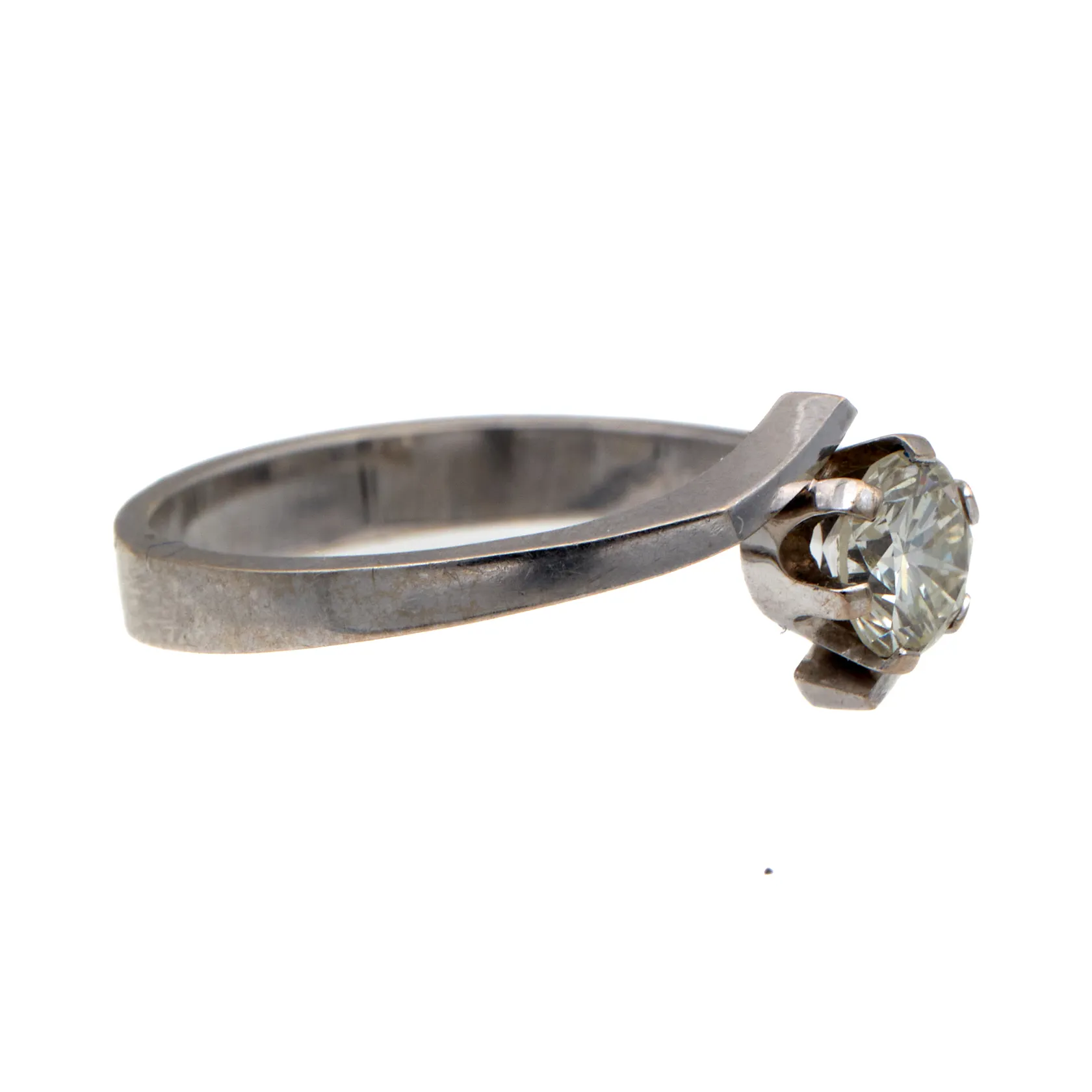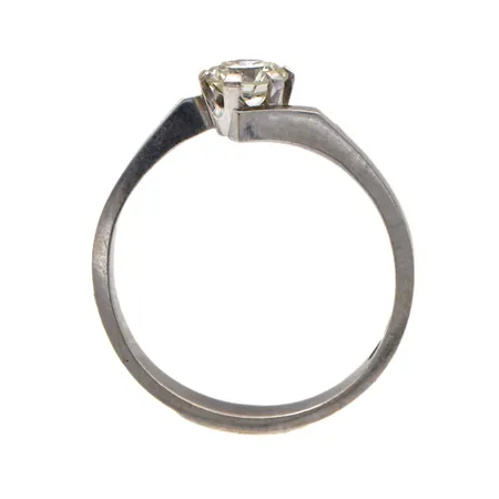 Timanttisormus 1xn.0.64ct, koko 19, tekijänleima Medaljonki Oy, vuodelta 1990, 585 valkokulta, Paino: 3,2 g