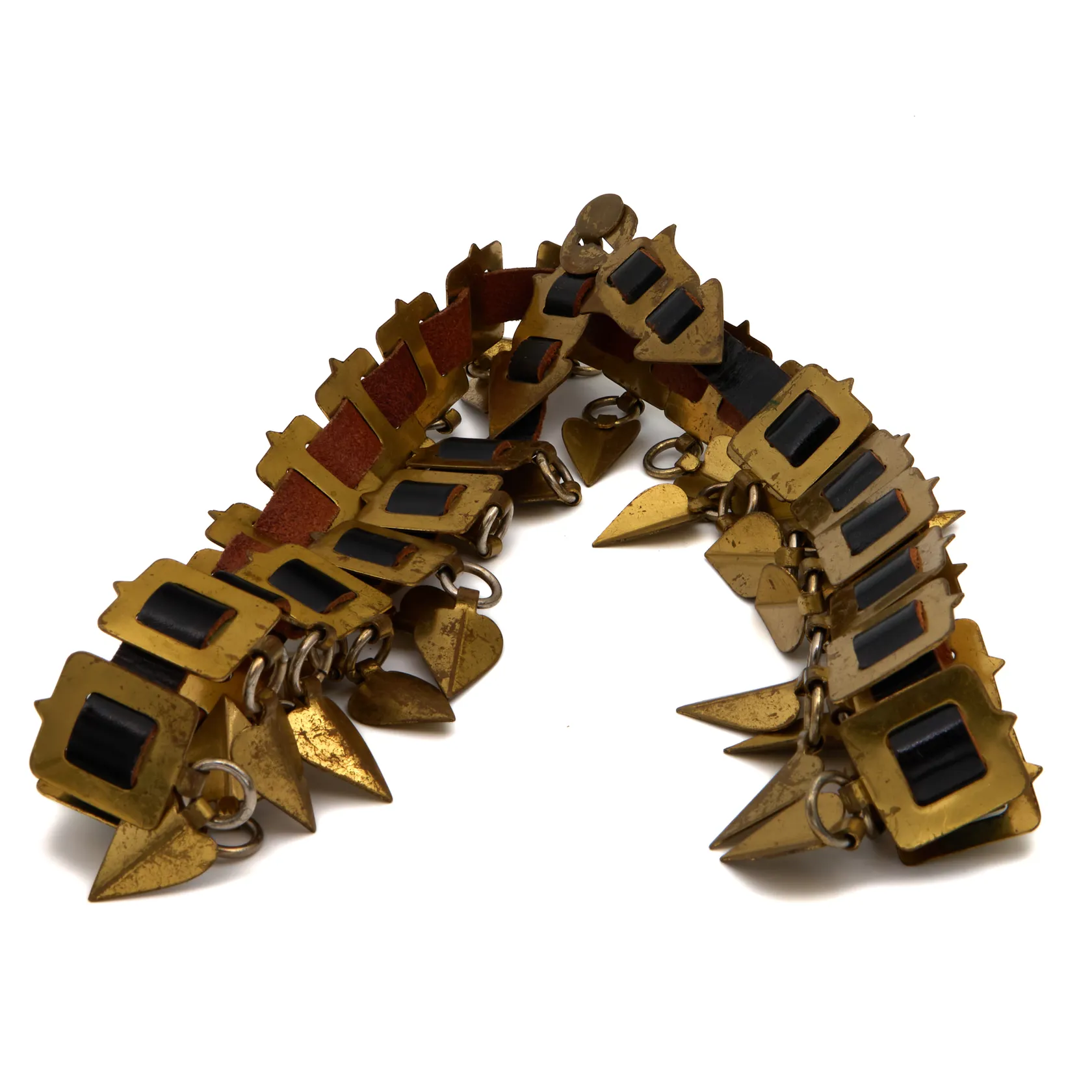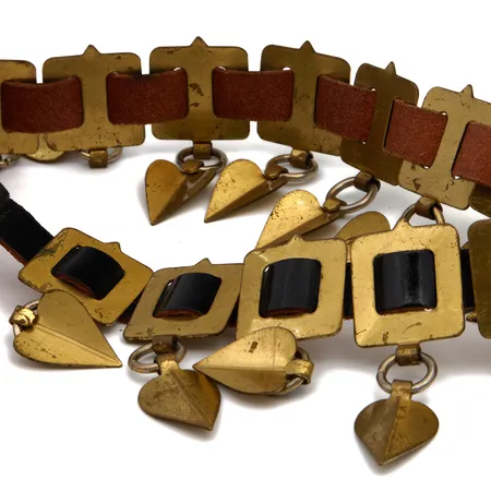 Jussi-vyö, nahkaa ja messinkiä, pituus 87cm,