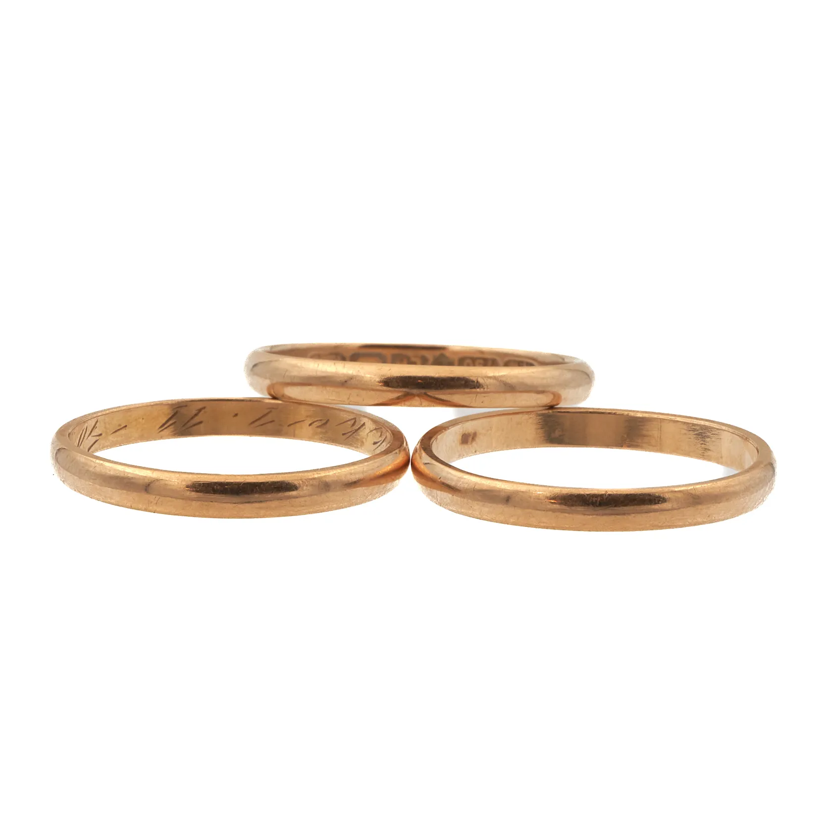Kolme sileää sormusta, koko 20-20¾, kaiverrettu, 750, Paino: 8,5 g