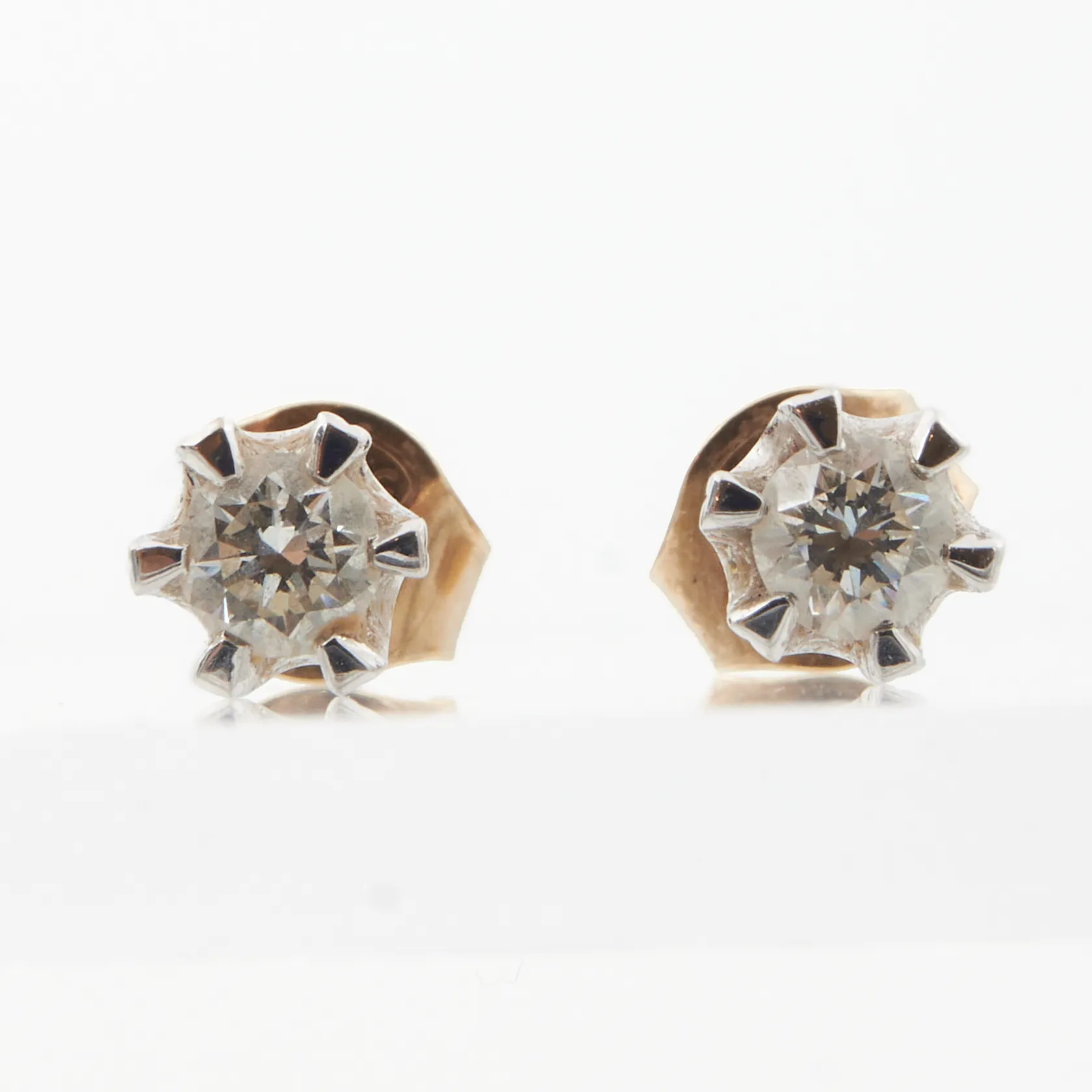 Timanttikorvakorut 2xn0.15ct, kelta- ja valkokultaa, 585br, Paino: 1,2 g
