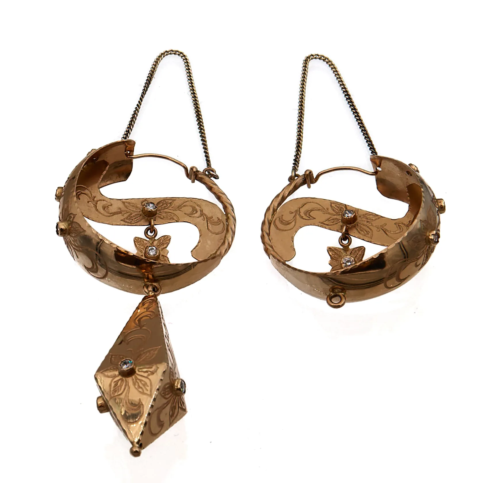Kivikehäkorvakorut toisessa punnus, kehän Ø 50mm, punnuksen korkeus 58mm, varmuusketju hopeaa, 585br, Paino: 52,6 g