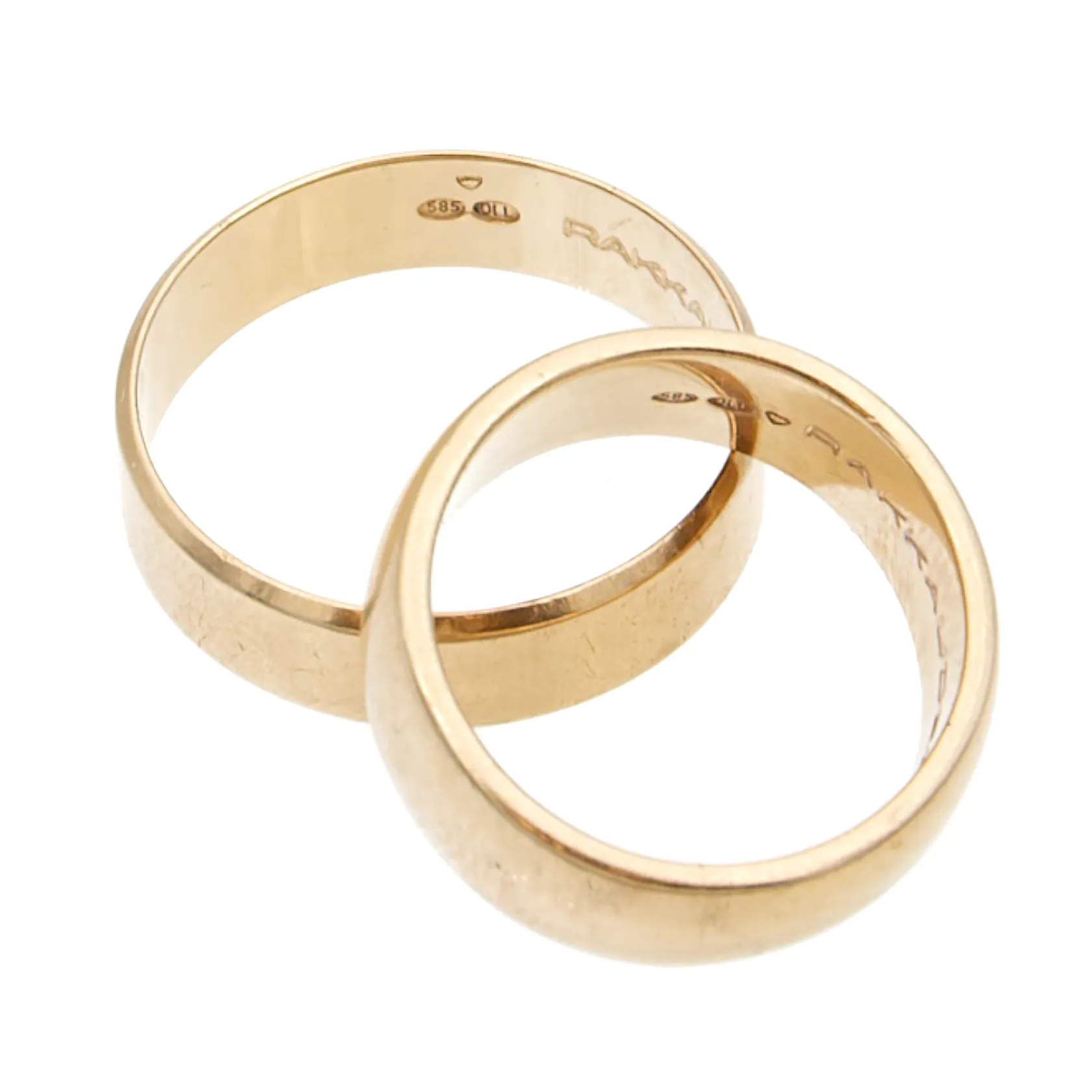 Kaksi sileää sormusta, koko 16¾ ja 19½, kaiverrettu, 585, Paino: 11,2 g
