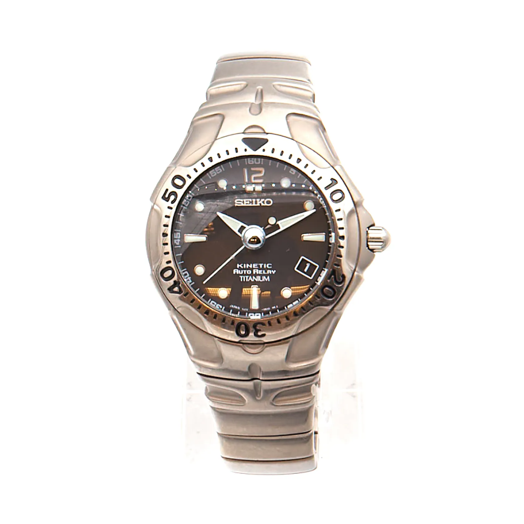 Titanium-rannekello Seiko Kinetic Auto Relay, Ø 40mm, pituus 190mm, ei patteria, käytön jälkiä.