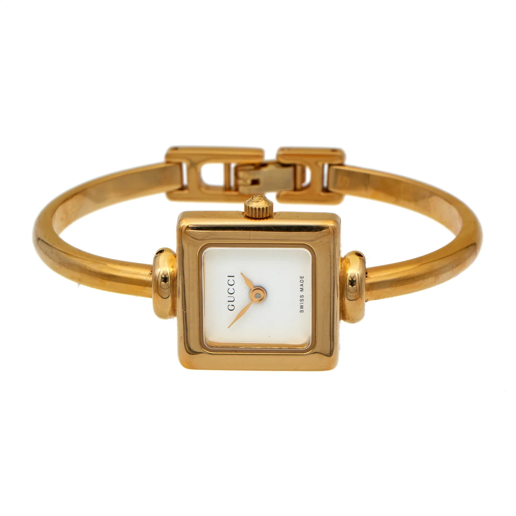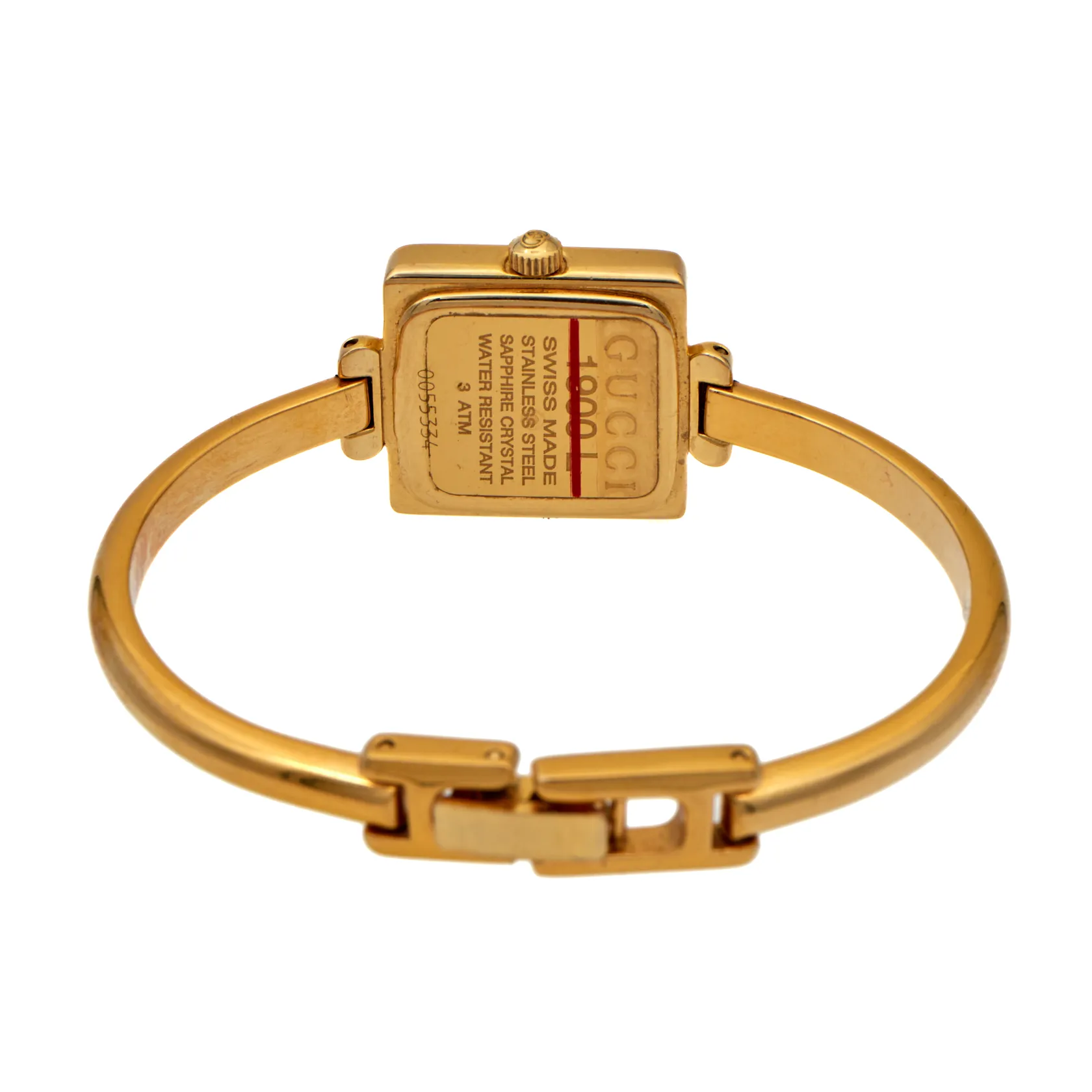 Teräsrannekello Gucci, quartz, paristo tyhjä, rungon mitat 19mm x 19mm, rannekkeen pituus 145mm, ref. 1900L, vähäisiä käytön jälkiä