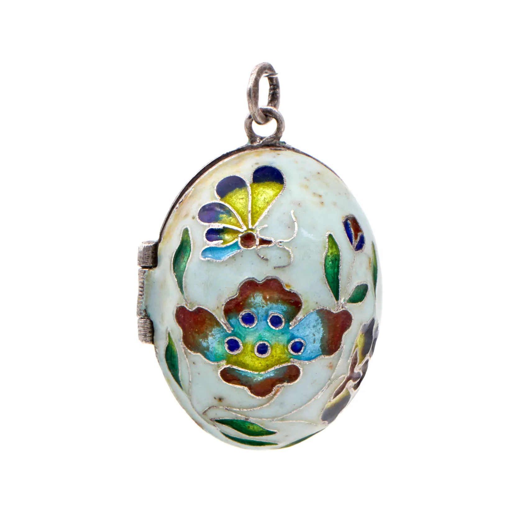 Viallinen emaloitu munariipus, lukitus löystynyt, lasitus korun sisällä halkeillut, Aikala O & Co Ky, korkeus 32mm, vuodelta 1982, 925br, Paino: 9,8 g