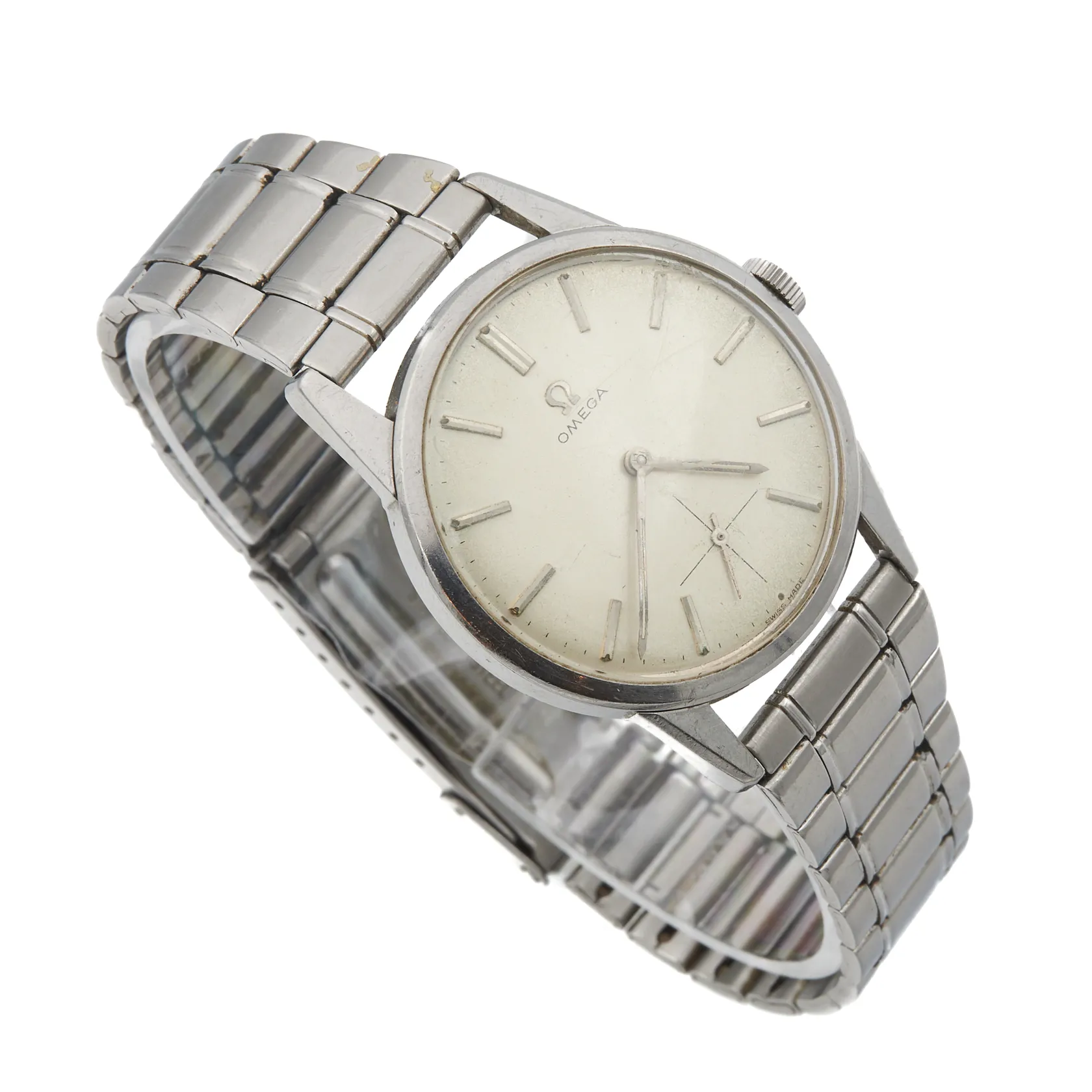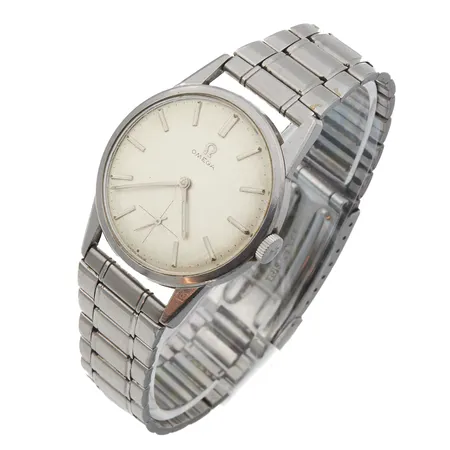 Teräsrannekello Omega, rungon Ø 34mm, rannekkeen pituus 200mm, käytön jälkiä, manuaalivetoinen,