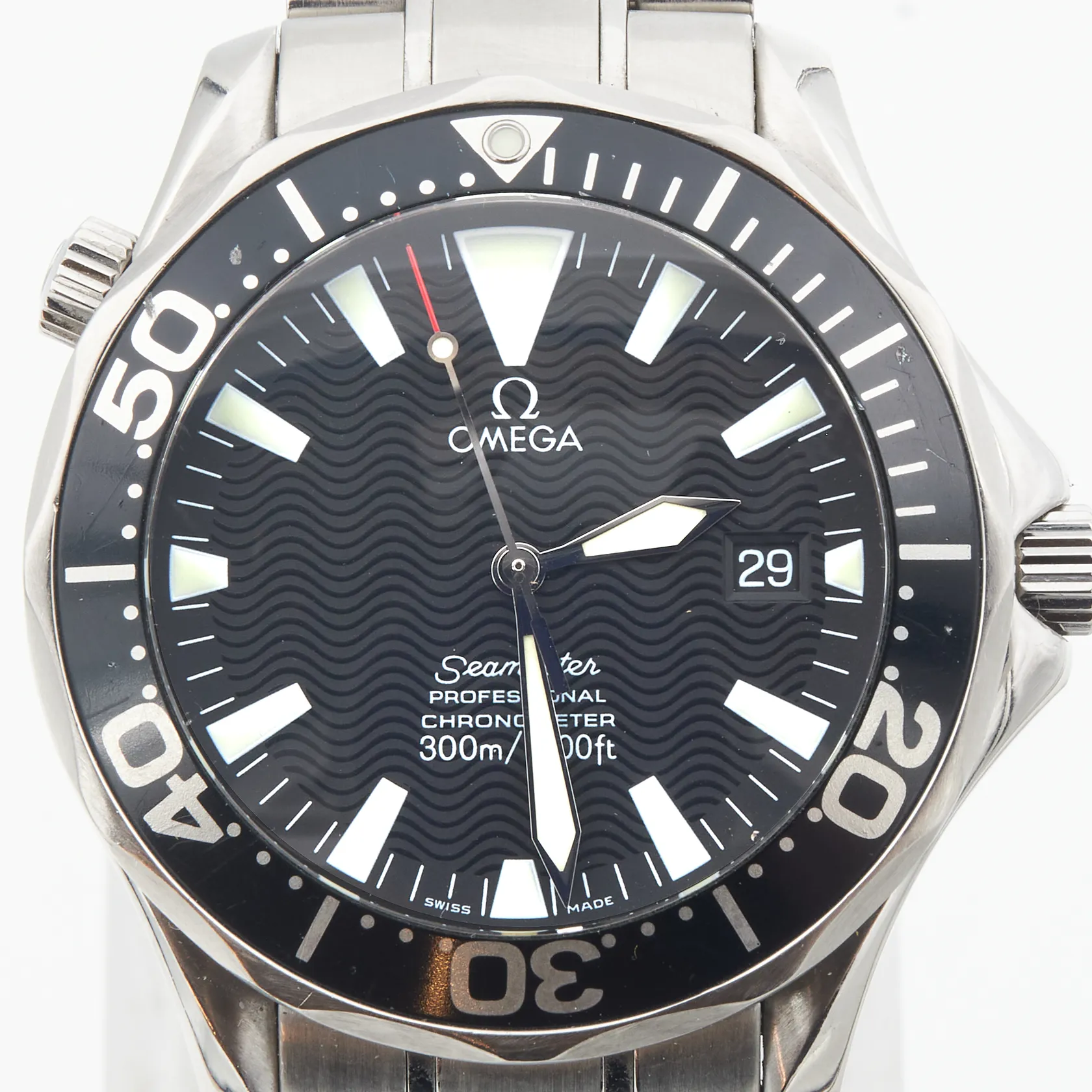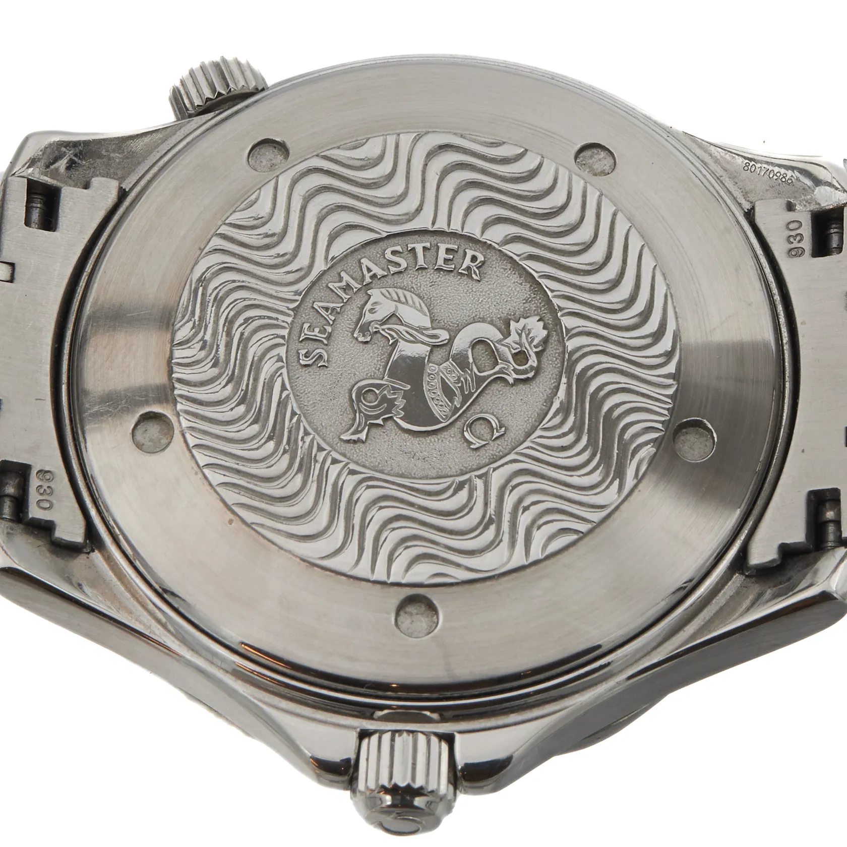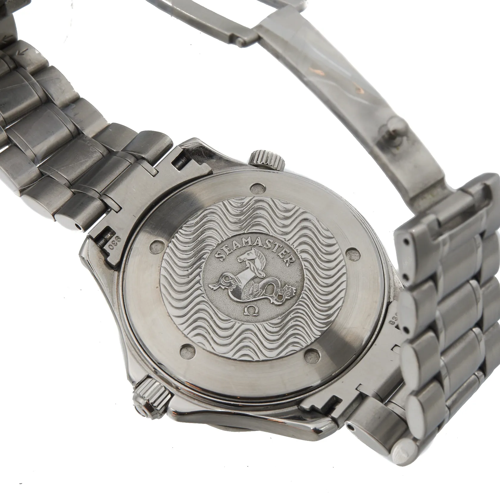 Teräsrannekello, Omega Seamaster Professional 300M, "Peter Blake", Chronometer, cal. 1120, automaatti, rungon Ø 41mm, rannekkeen pituus 180mm, koneiston täysihuolto päivätty 20.4.2023, ref. 22545000, ser. 80170989, laatikko (kulumaa) huolto papereita, jatkopala,