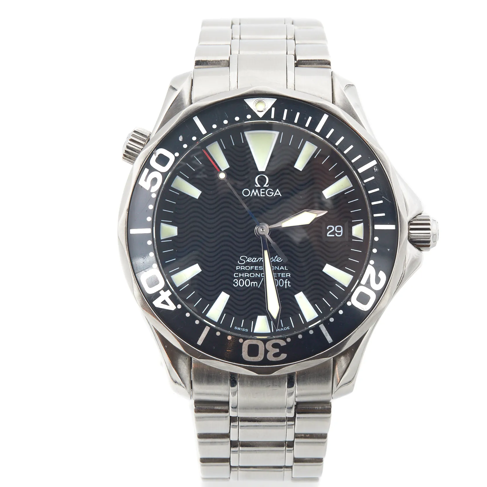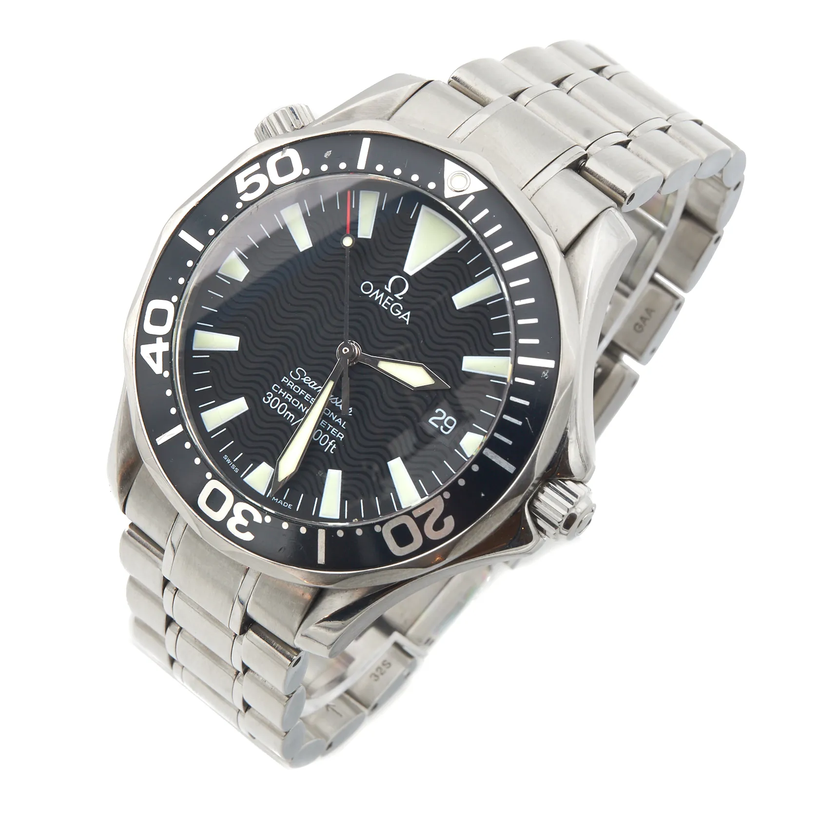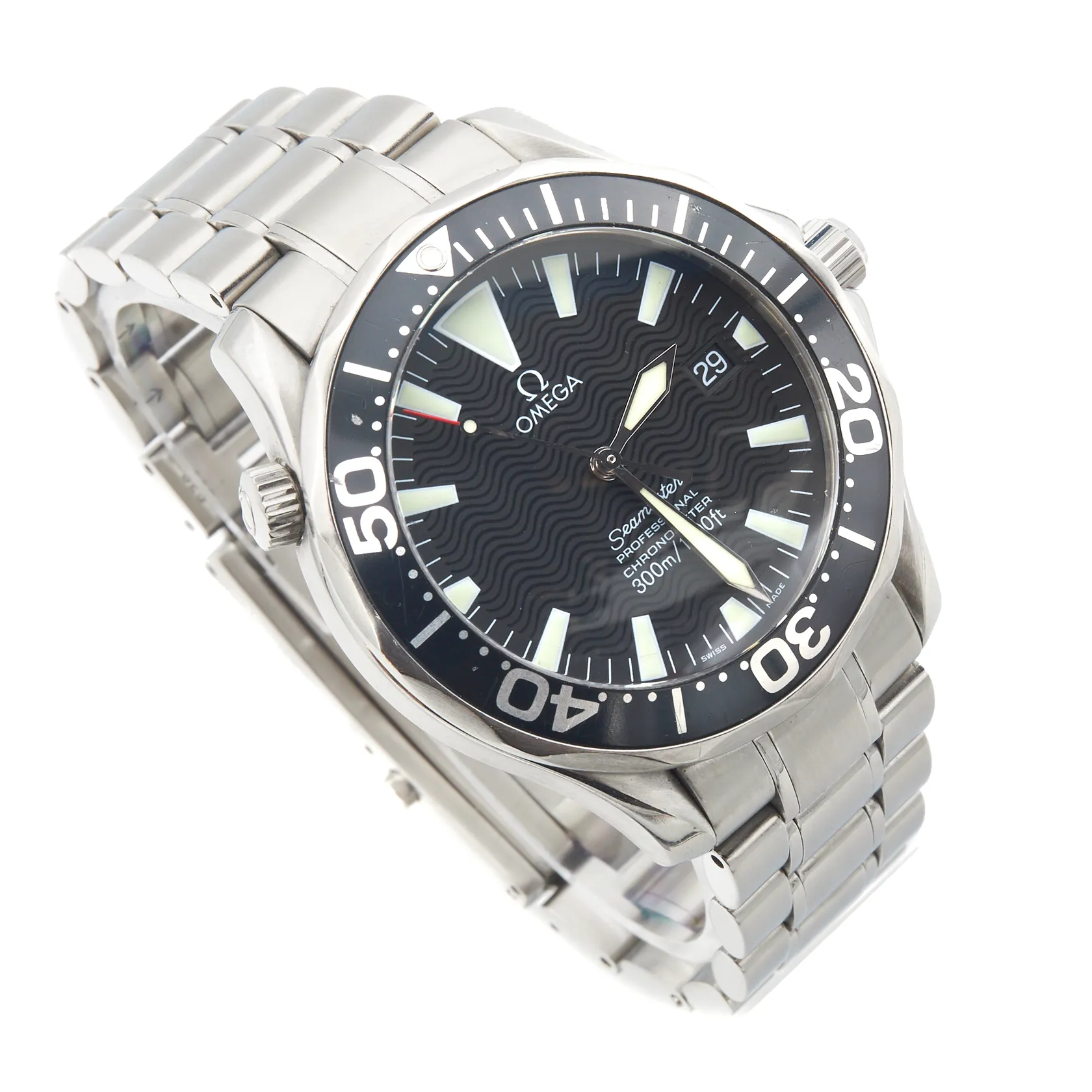 Teräsrannekello, Omega Seamaster Professional 300M, "Peter Blake", Chronometer, cal. 1120, automaatti, rungon Ø 41mm, rannekkeen pituus 180mm, koneiston täysihuolto päivätty 20.4.2023, ref. 22545000, ser. 80170989, laatikko (kulumaa) huolto papereita, jatkopala,