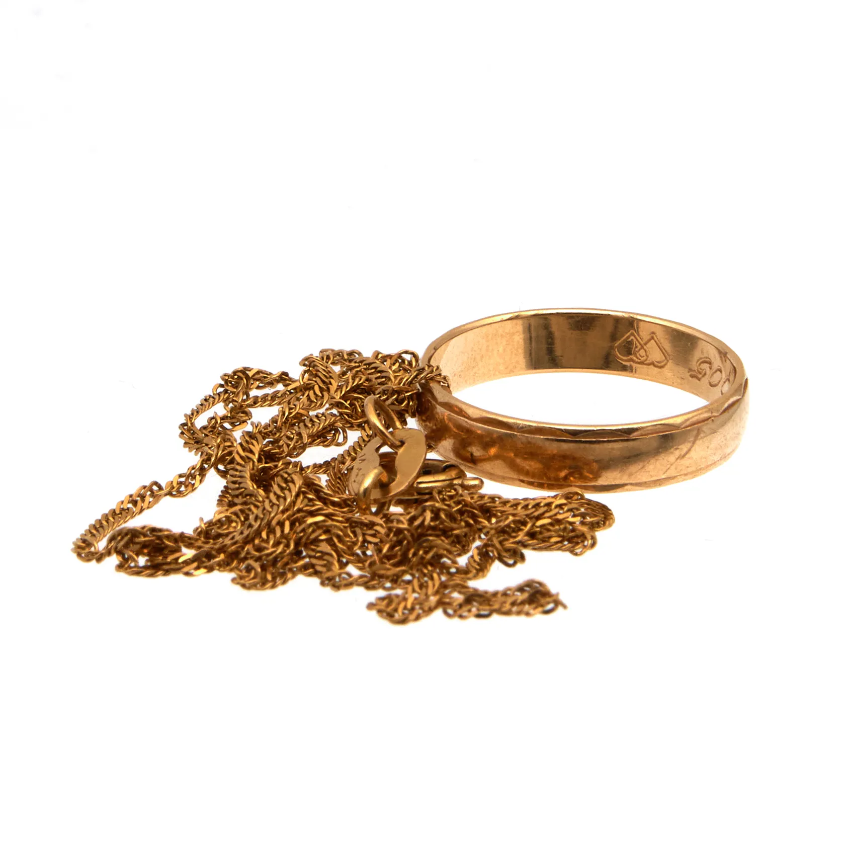 Viallinen kaulaketju ja kaiverrettu sormus, 750, Paino: 5,5 g