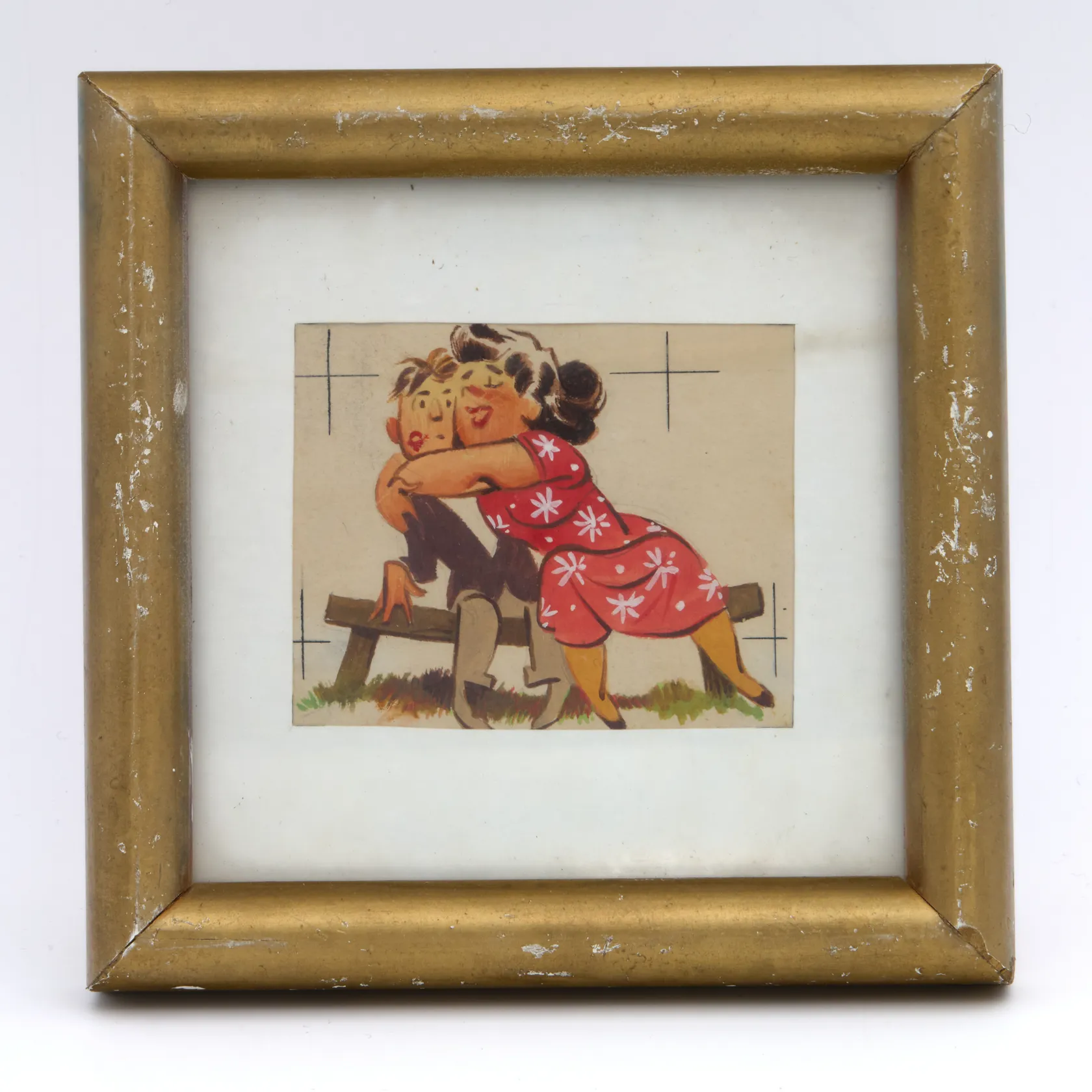 Pieni taulu, kehysten mitat 135x135mm, kyhyksissä kulumia, tuntematon taiteilija