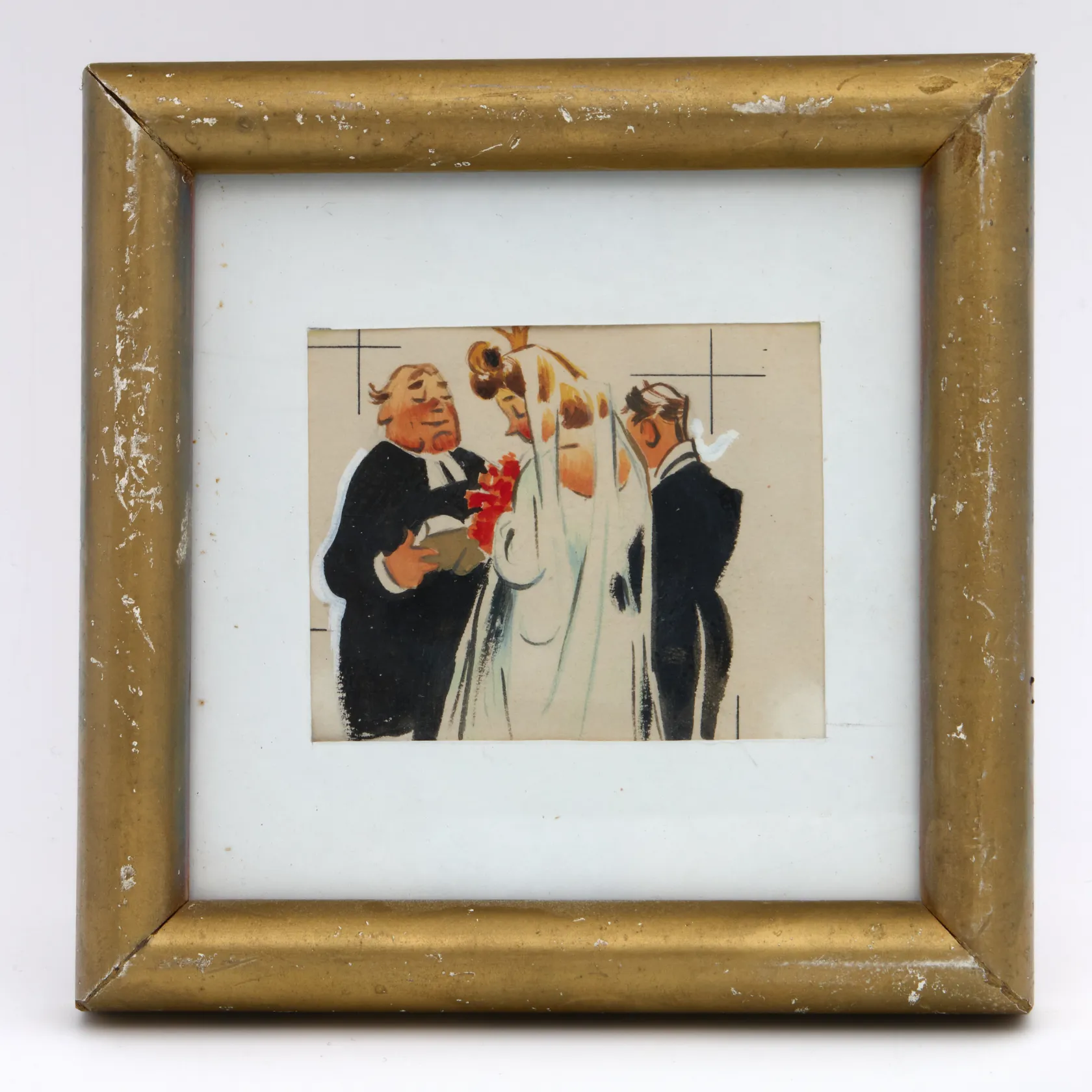 Pieni taulu, kehysten mitat 135x135mm, kyhyksissä kulumia, tuntematon taiteilija
