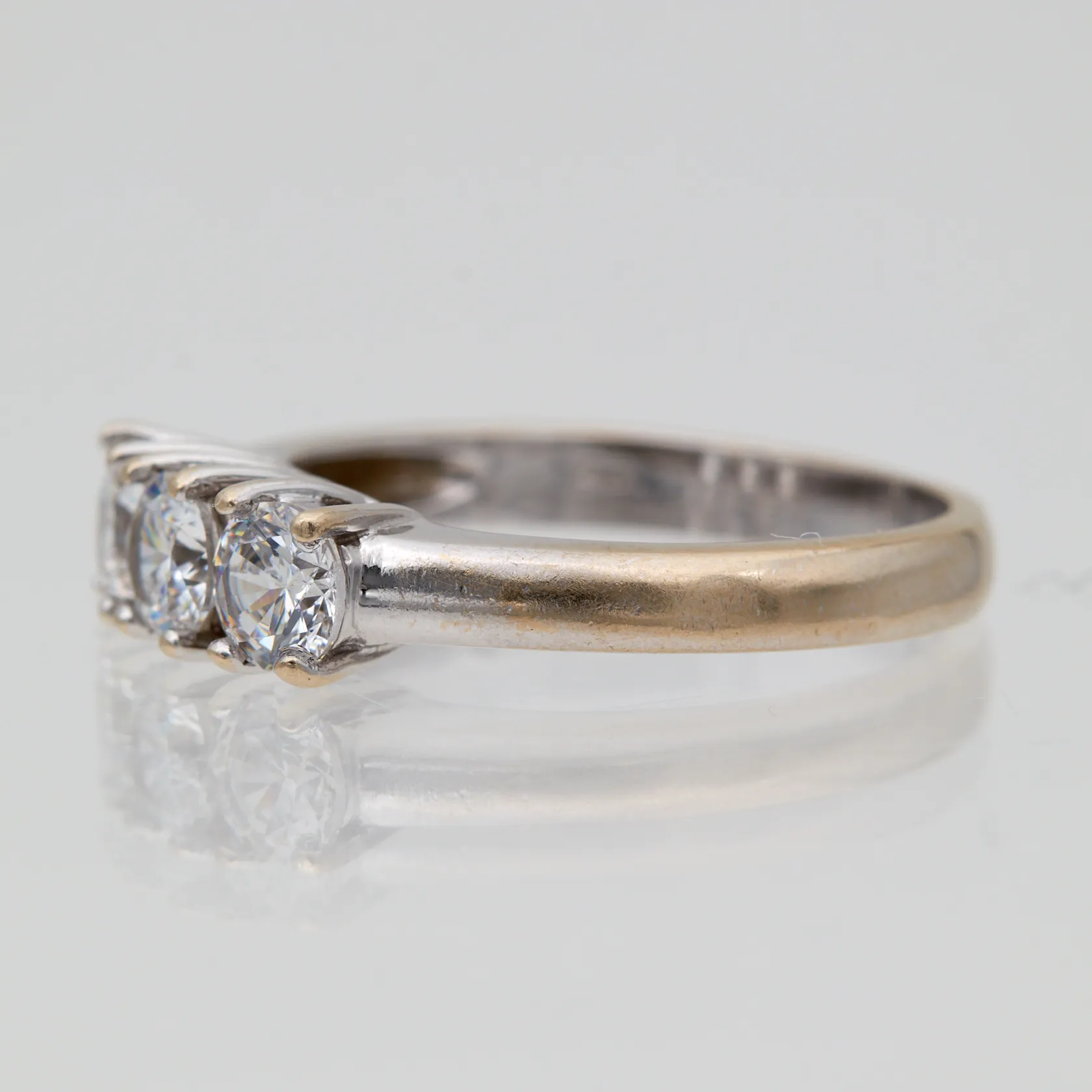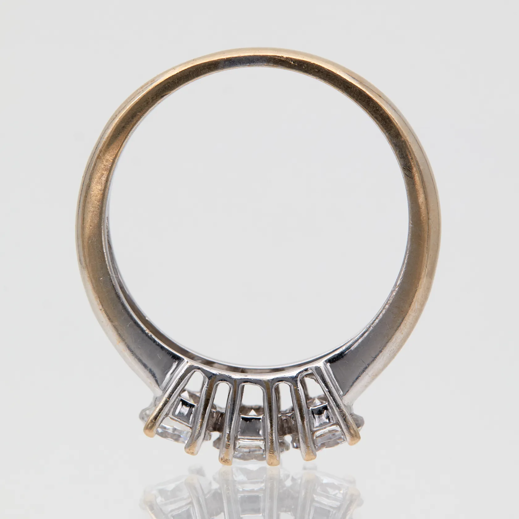 Kivisormus, yhdessä kivistä kulumaa reunassa, koko 17¼, 750br valkokulta, Paino: 4 g