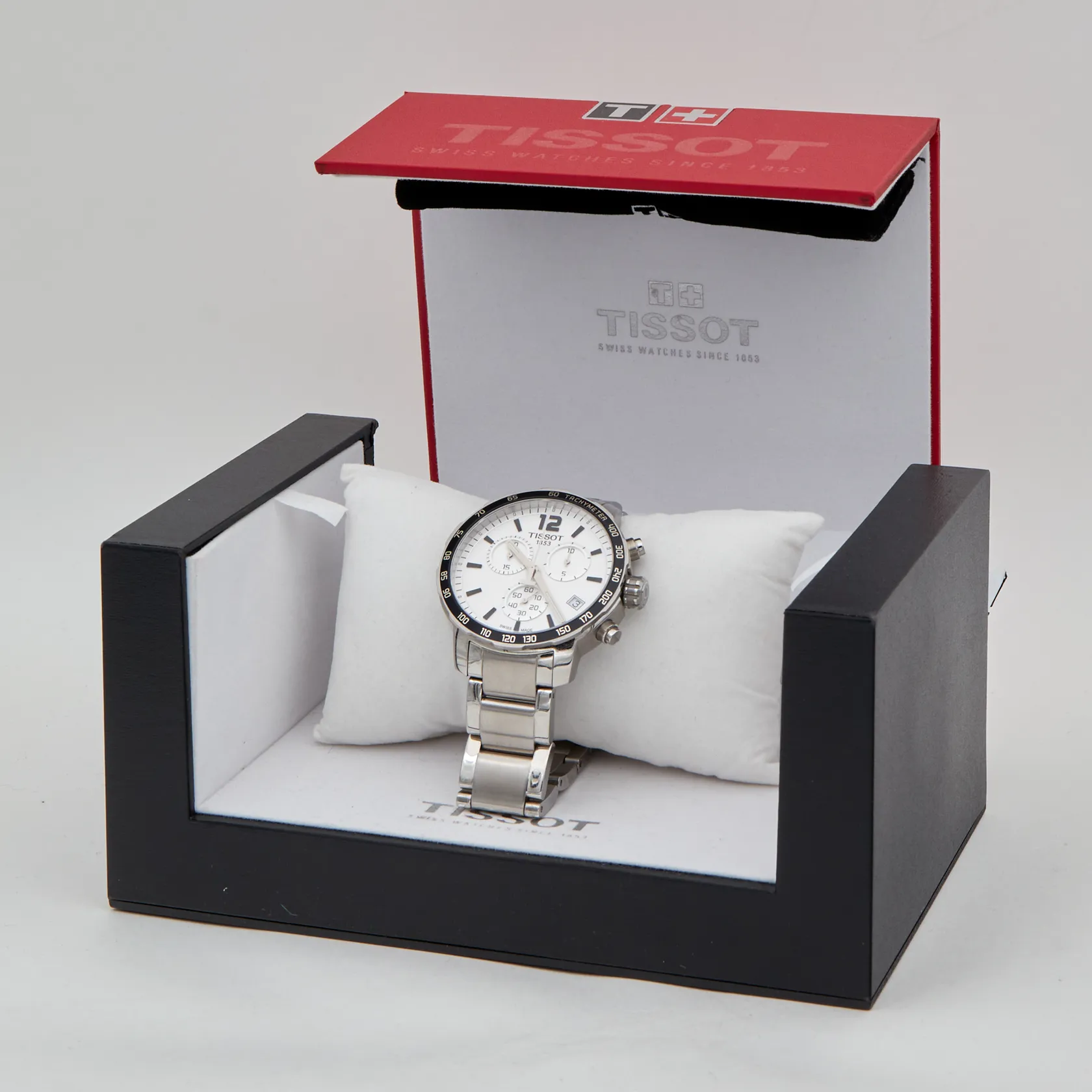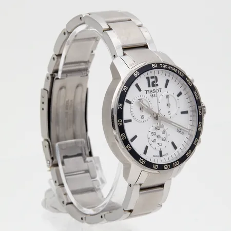 Teräsrannekello, Tissot Quickster Chronograph, quartz, rungon Ø 42mm, ref. T0954171603700, laatikko, takuukortti