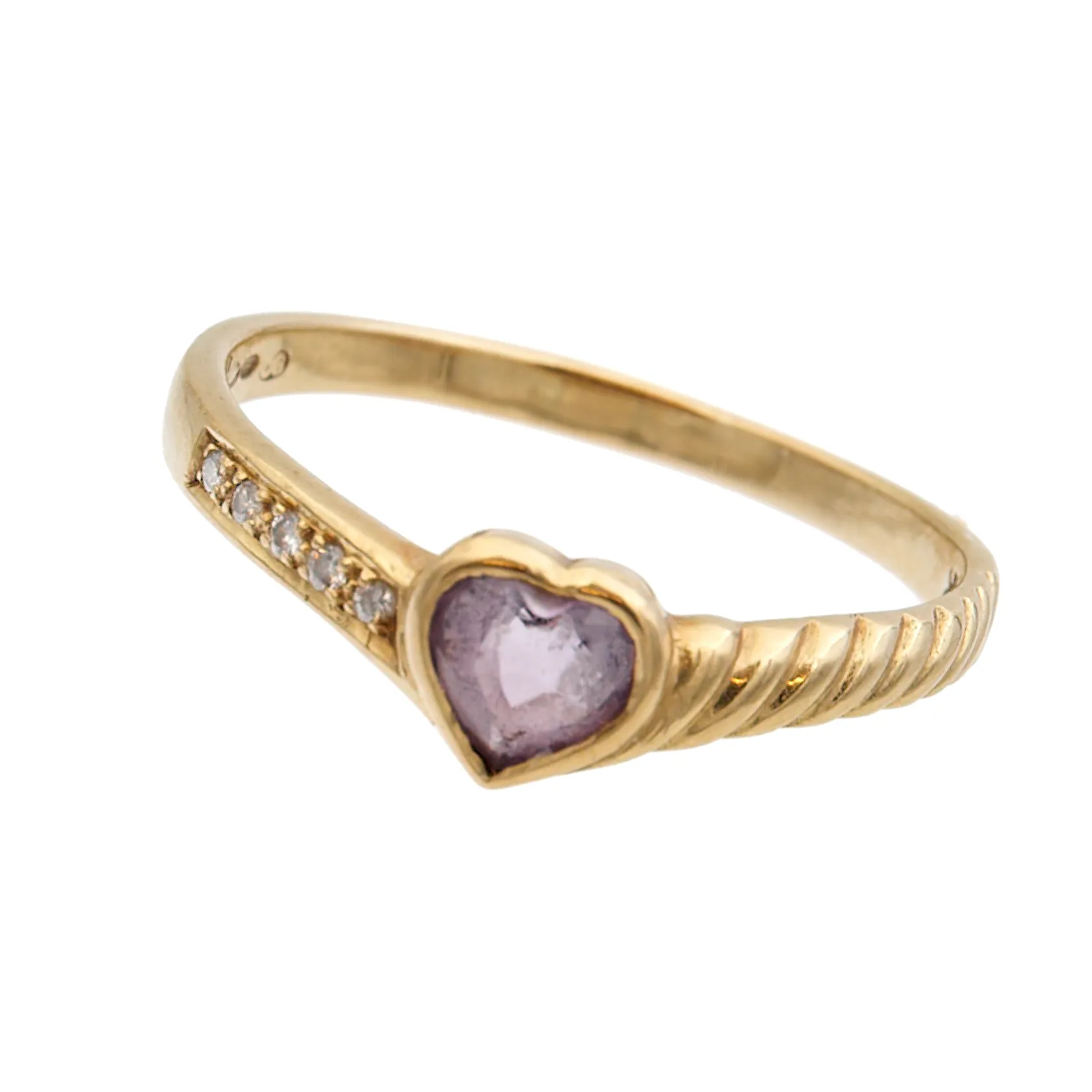 Sydän-sormus kivellä ja timanteilla 5xn.0.005ct, koko 18¼, 585br, Paino: 2 g