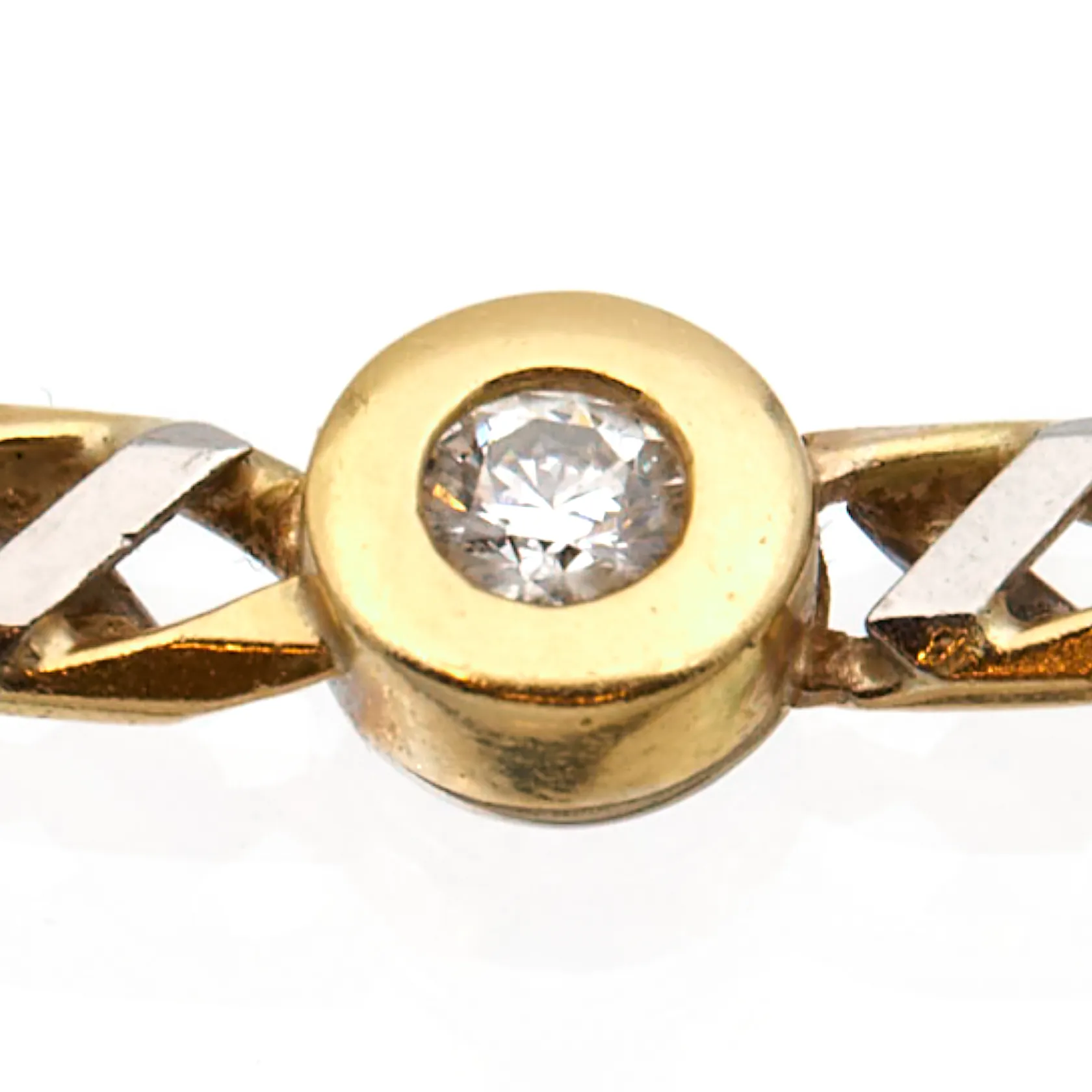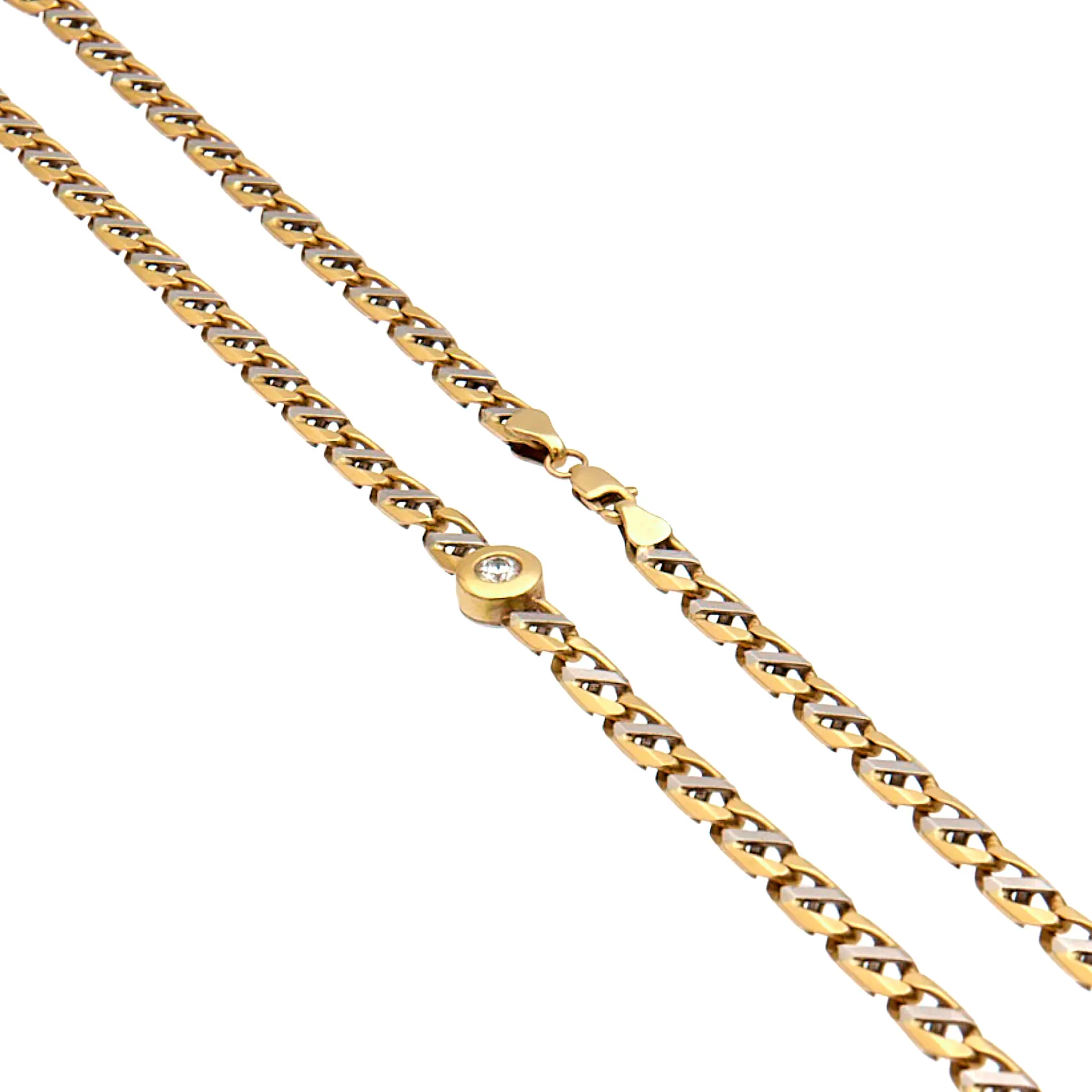 Kaulaketju timanteilla 1xn.0.40ct ja 19xn.0.01ct, pituus 57cm, leveys 5-8mm, 585 valko- ja keltakulta, Paino: 52,7 g