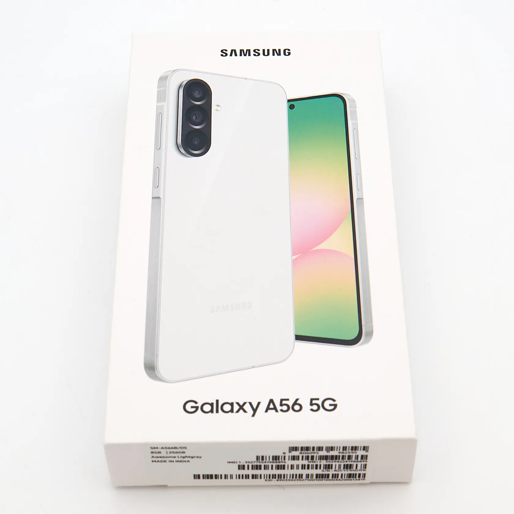 Puhelin Samsung Galaxy A56, SM-A566B/DS, 5G, 8GB / 256GB, virtajohto ja laatikko. Ostettu 4/2025
