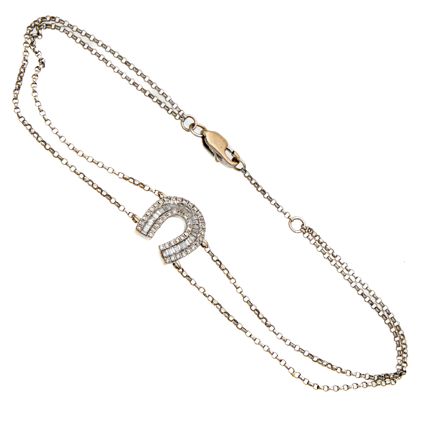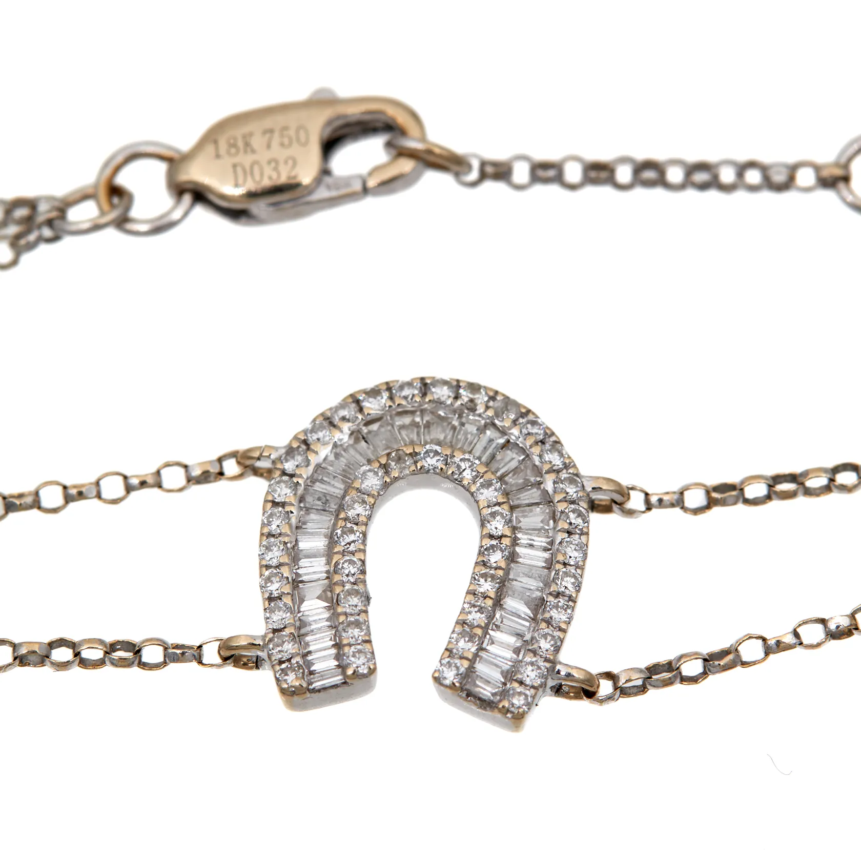 Timanttirannekoru 42xn0.005ct pyöreä hiontaista, 29xn0.01ct baguette hiontaista, pituus 172-191mm, valkokulta 750, Paino: 2,8 g