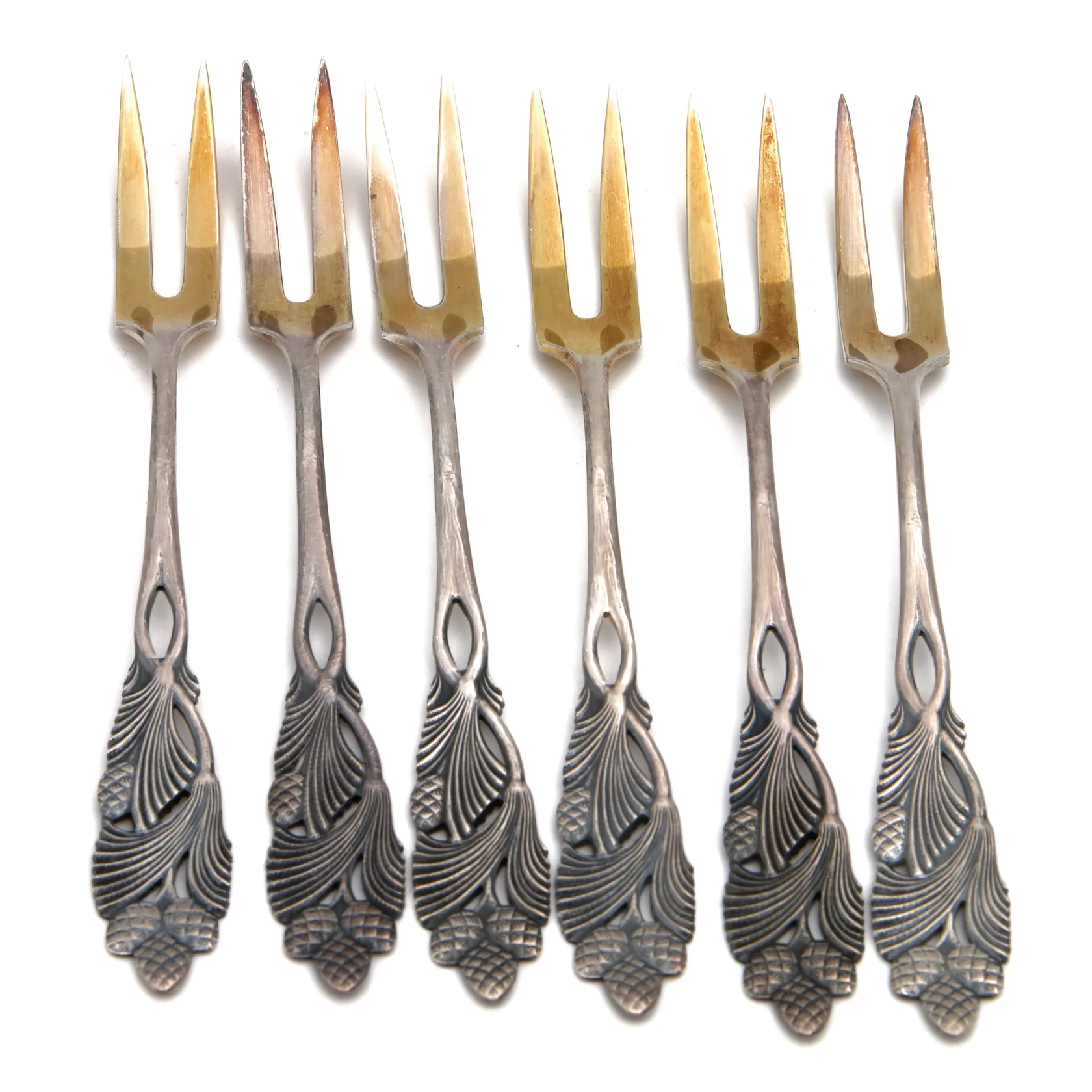 Kuusi leikkelehaarukkaa, kaiverrettu, pituus 118mm, 813,