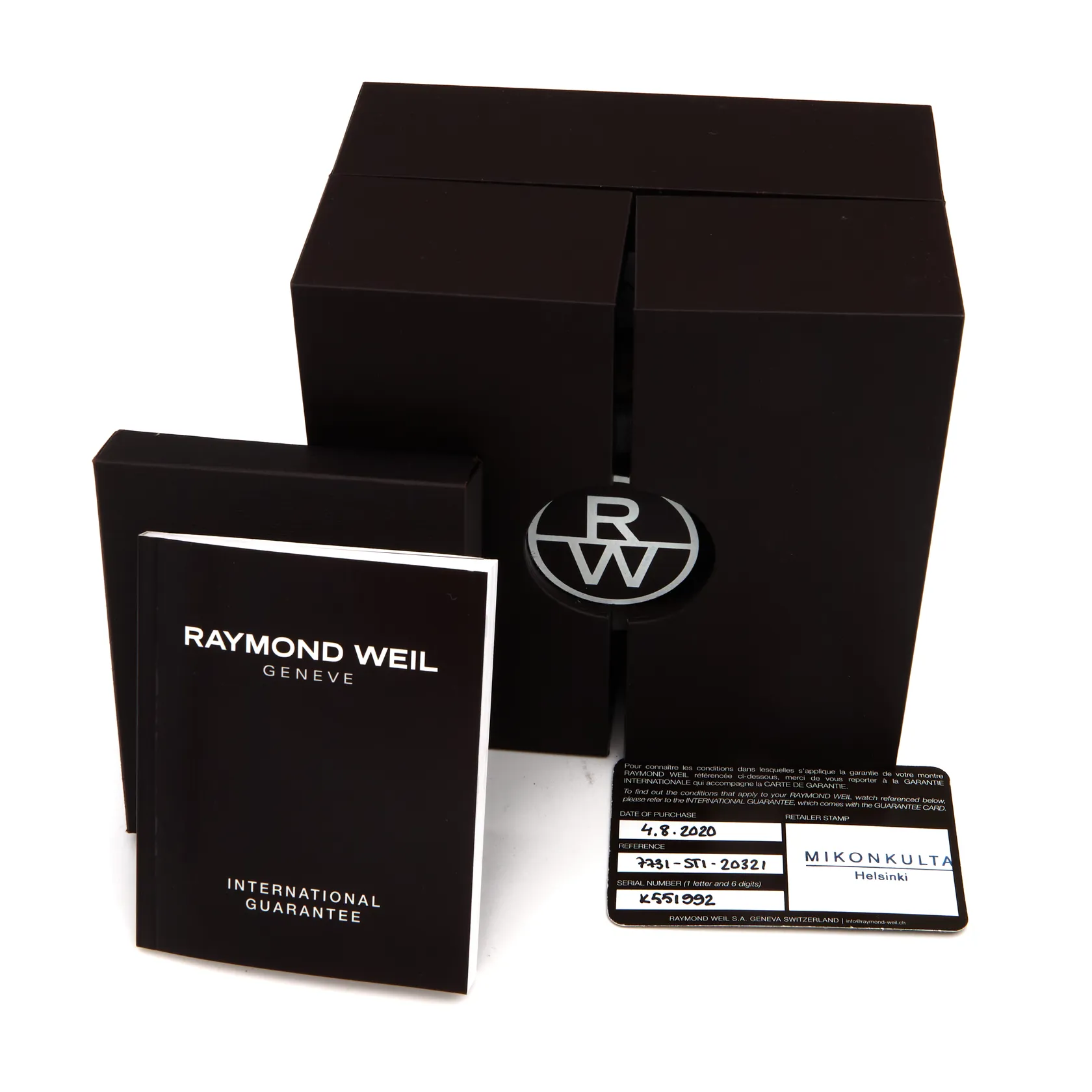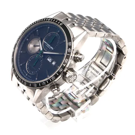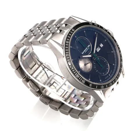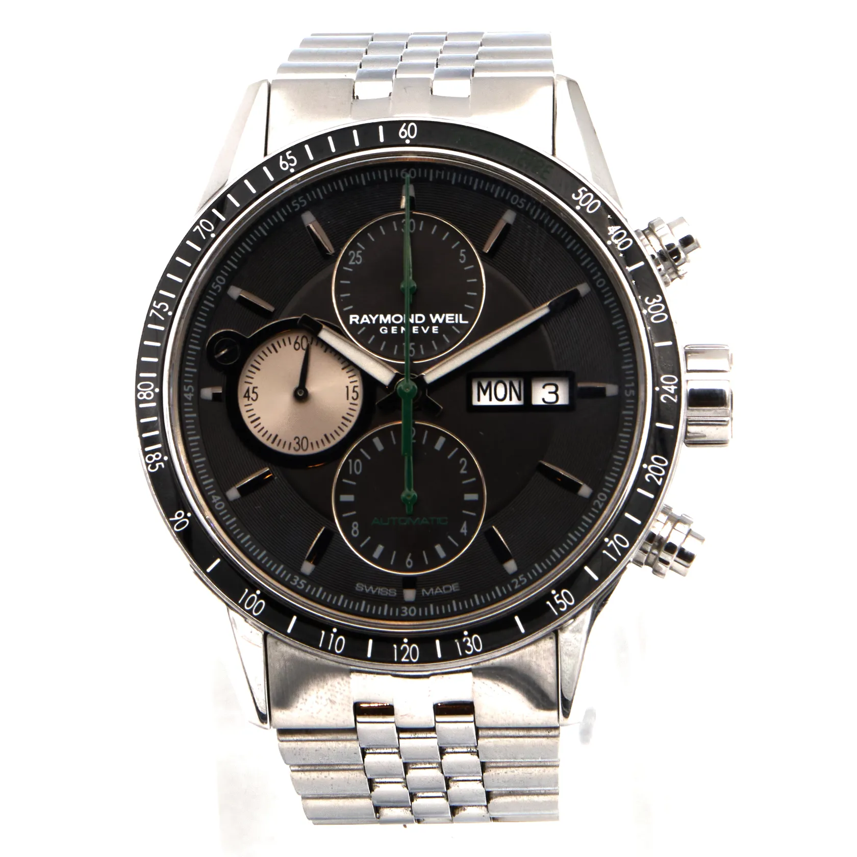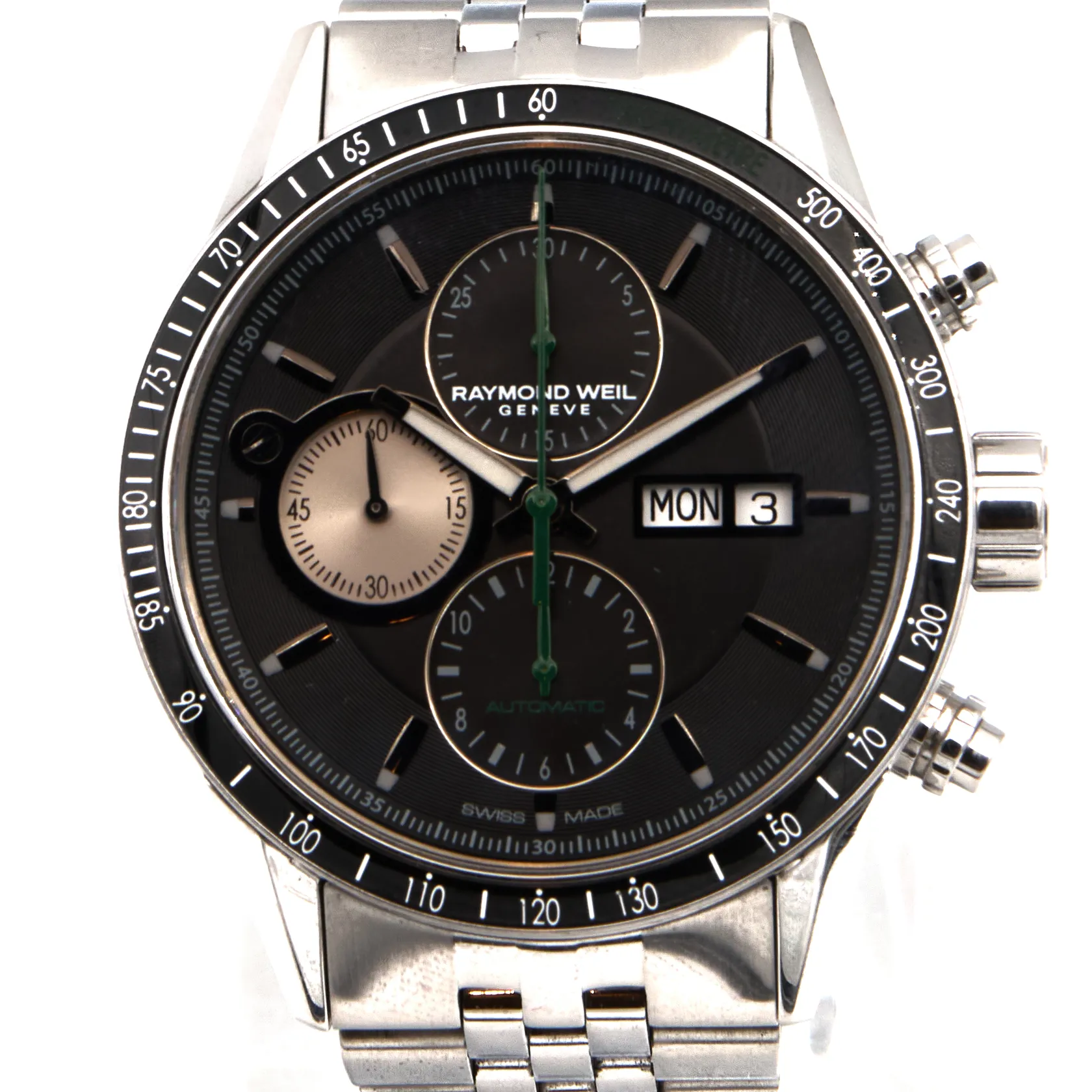 Teräsrannekello Raymod Weil Freelancer Chronograph, automaatti, ref. 7731-STI-20321, sr. K551992, rungon Ø 42mm, rannekkeen pituus 175mm, rannekkeessa pieniä käytön jälkiä, mukana kulunut laatikko ja takuukortti.
