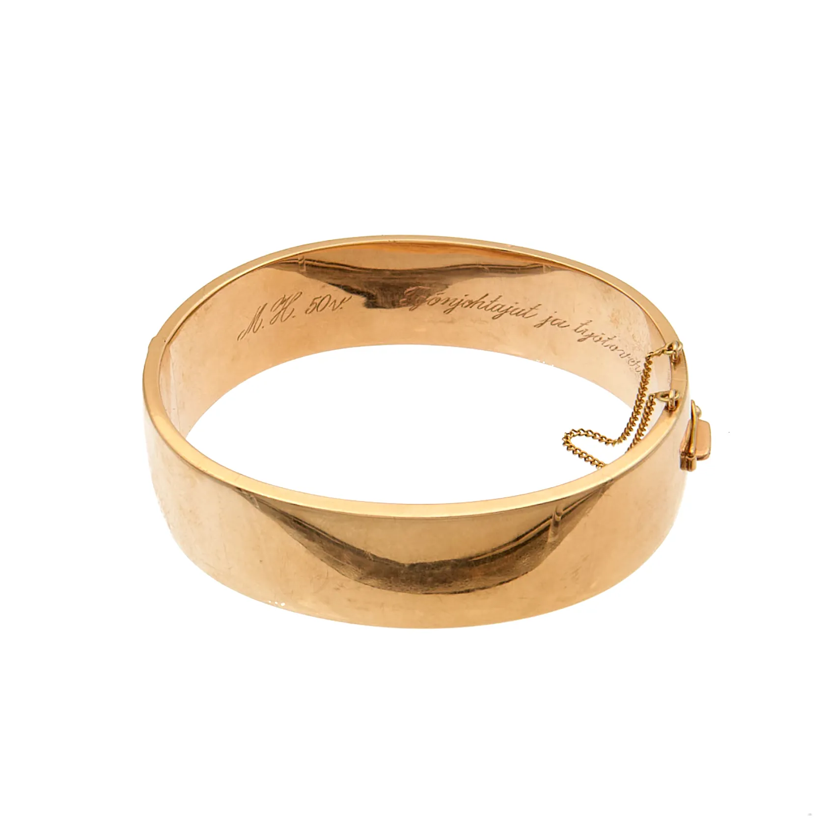 Rannerengas, Ø 65mm, leveys 18mm, kaiverrettu, tekijänleima Pekka Anttila, Helsinki 1962, käytön jälkiä, 585br, Paino: 35,3 g