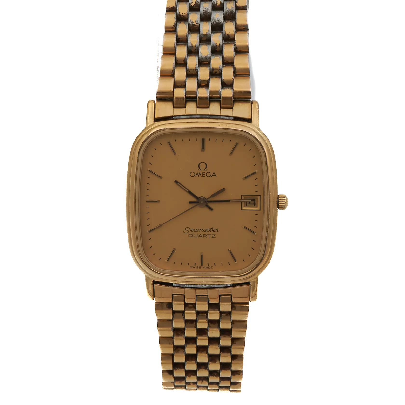 Teräsrannekello Omega seamaster quartz, paristo loppu, rungon mitat 28 x 28mm, rannekken pituus 215mm, käytön jälkiä.