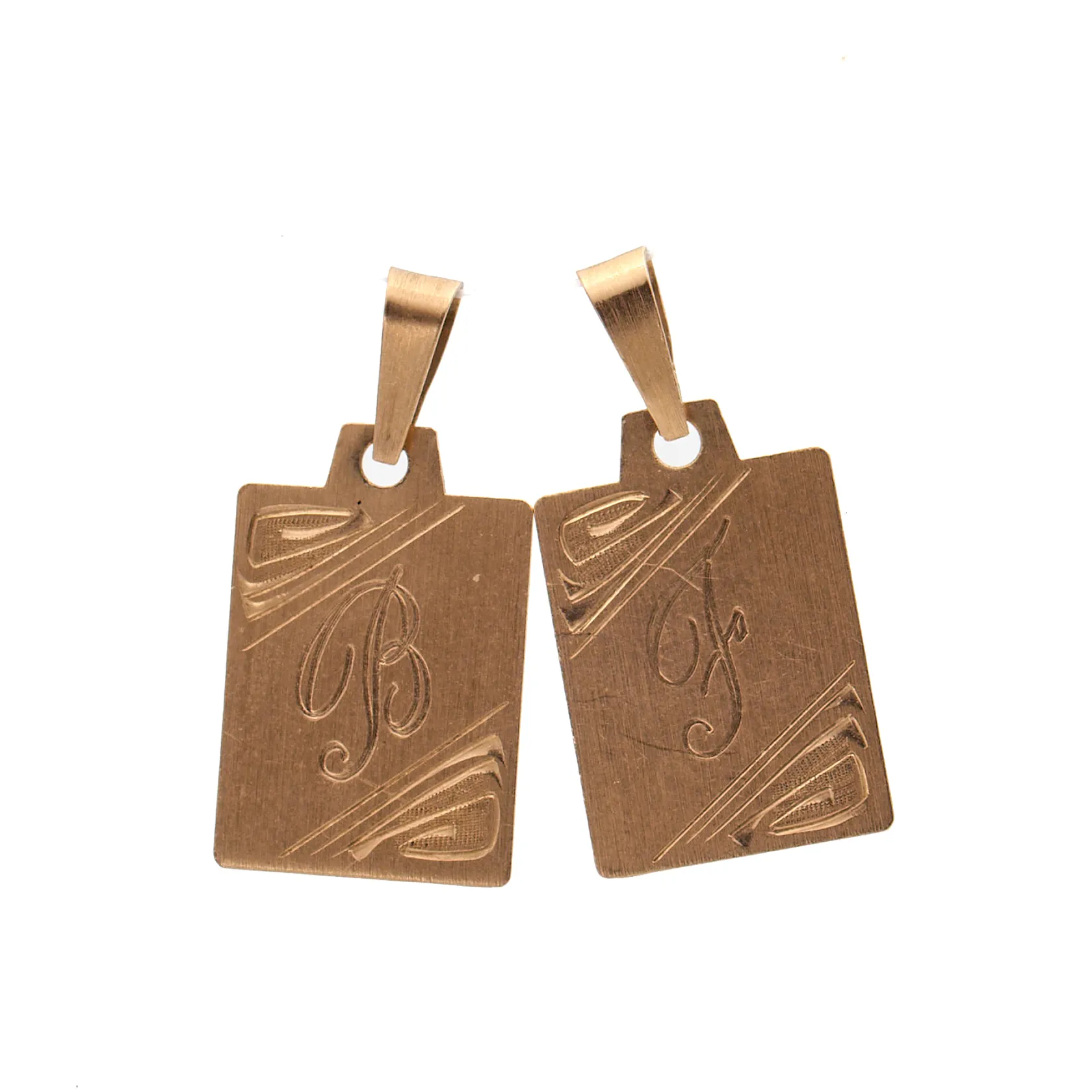 Kaksi laattariipusta, korkeus 20mm, kaiverrettuja, 585, Paino: 1,3 g