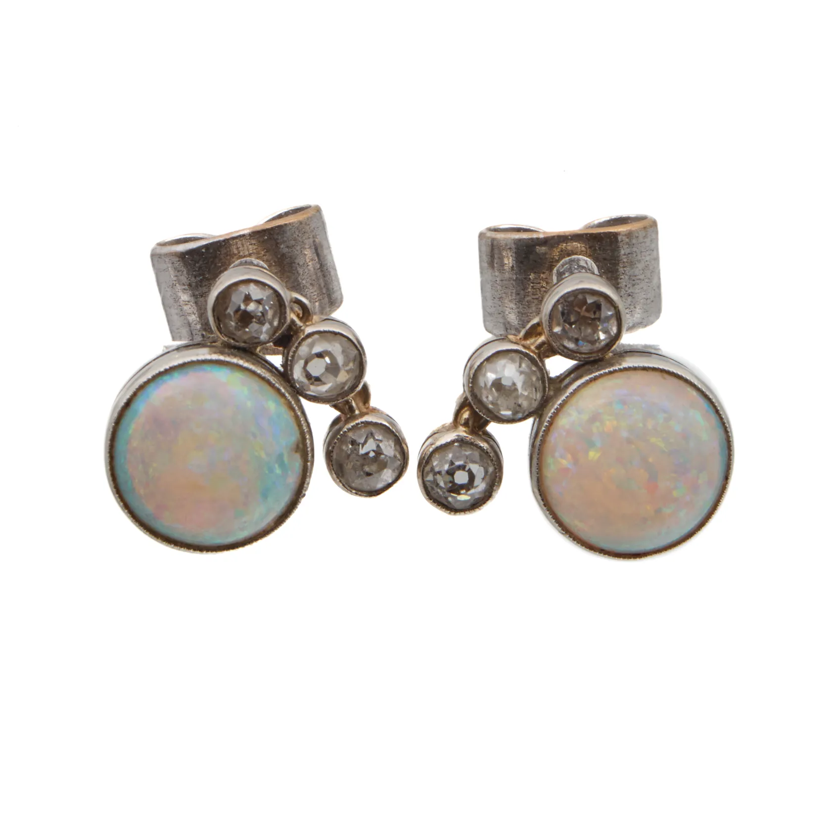 Opaalikorvakorut vanhahiontaisilla timanteilla 6xn.0.07ct, korkeus 11mm, taustat metallia, 585br valkokulta, Paino: 3,7 g