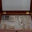 Chippendale aterinsarja, kuusi ruokahaarukkaa pituus 180mm , kuusi ruokaveistä pituus 210mm, kuusi ruokalusikkaa pituus 170mm, kuusi jälkiruokalusikkaa pituus 145mm, kuusi kahvilusikkaa sekä säilytyslaatikko, 681,3 830 ja 353,7 830br, Paino: 1035 g