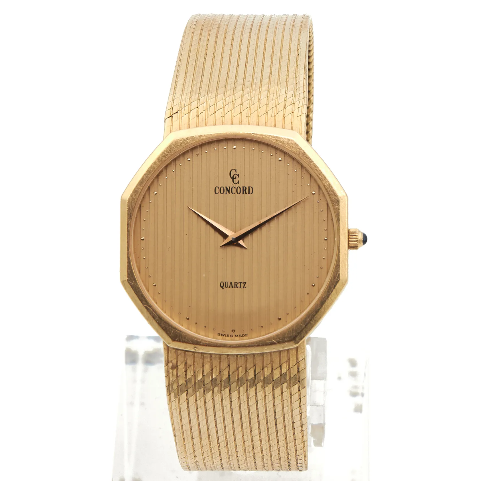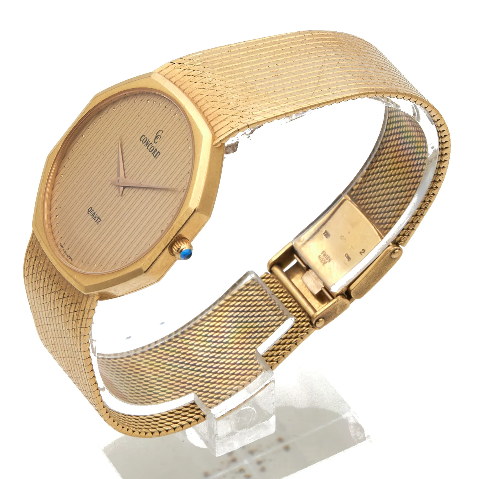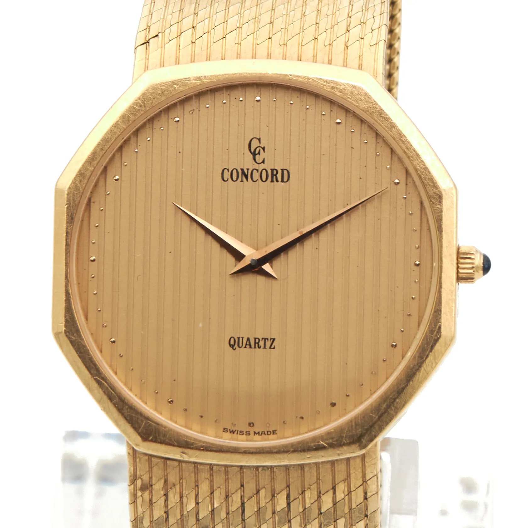 Kultarannekello Concord Quartz, Swiss Made, ref 5081113, rungon Ø33.5mm, kultarannekkeen pituus 190mm, ei käy, patteri loppunut, 750br Paino: 75,9 g