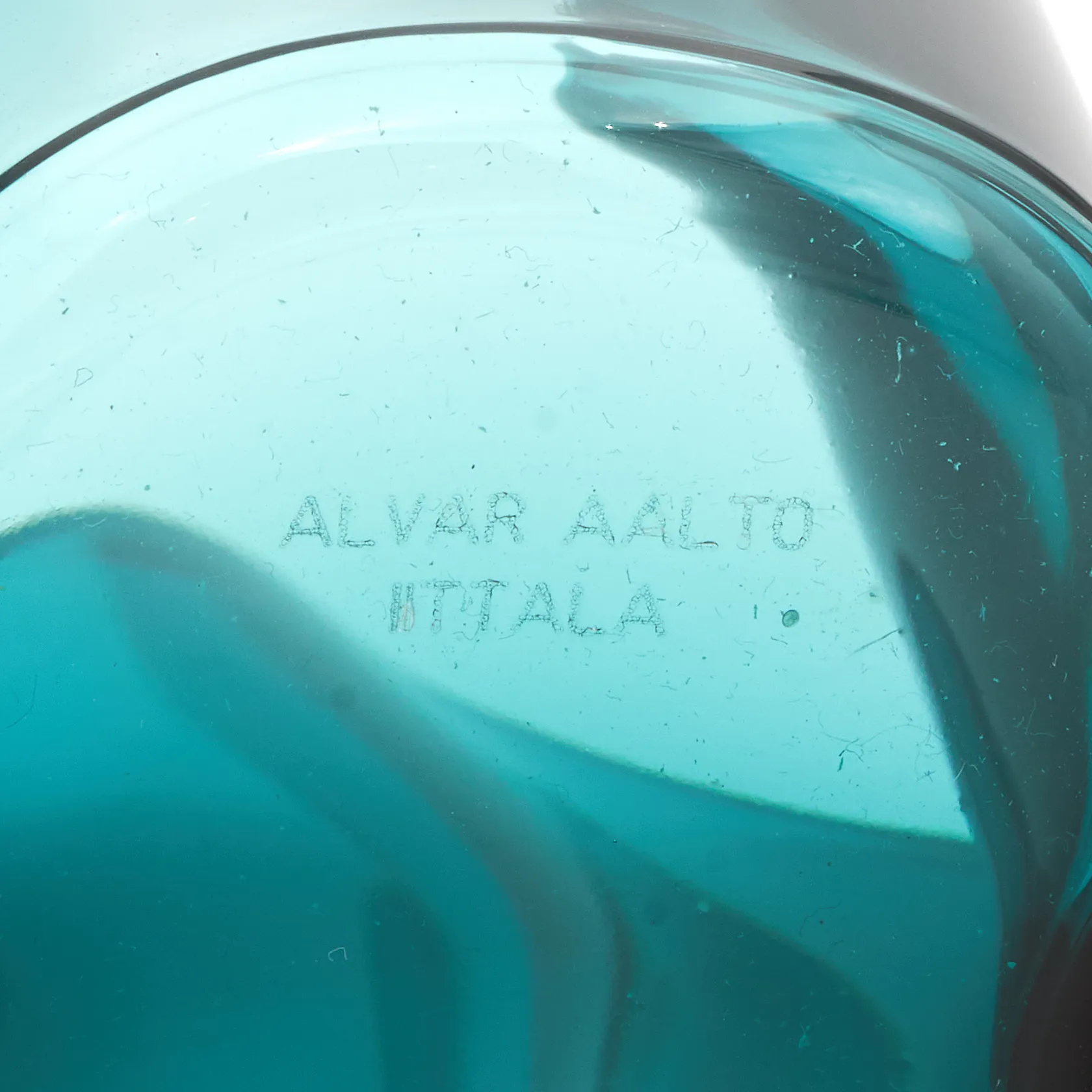 Savoy-maljakko, kirkas, design Alvar Aalto, korkeus120mm, laserkaiverrus , Juhlavuoden petrolin sininen 2006,