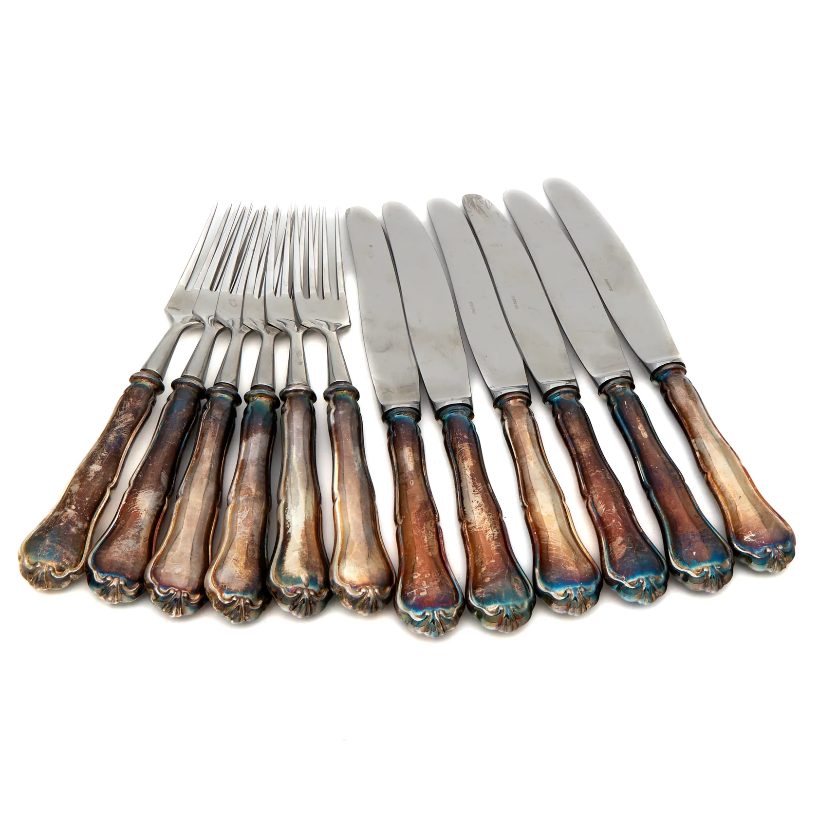 Kuusi haarukka ja veistä Chippendale, pituus 185mm ja 205mm, 830br, Paino: 789,8 g