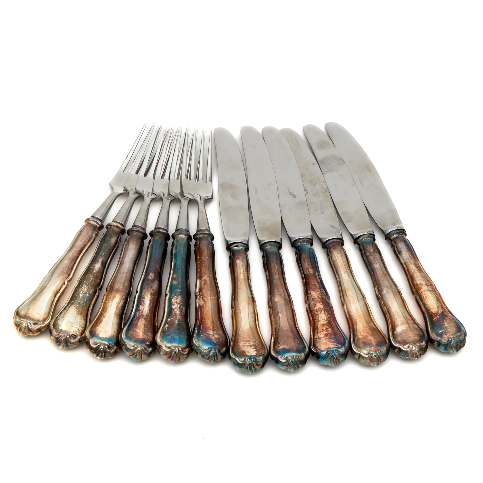 Kuusi haarukka ja veistä Chippendale, pituus 185mm ja 205mm, 830br, Paino: 807,4 g