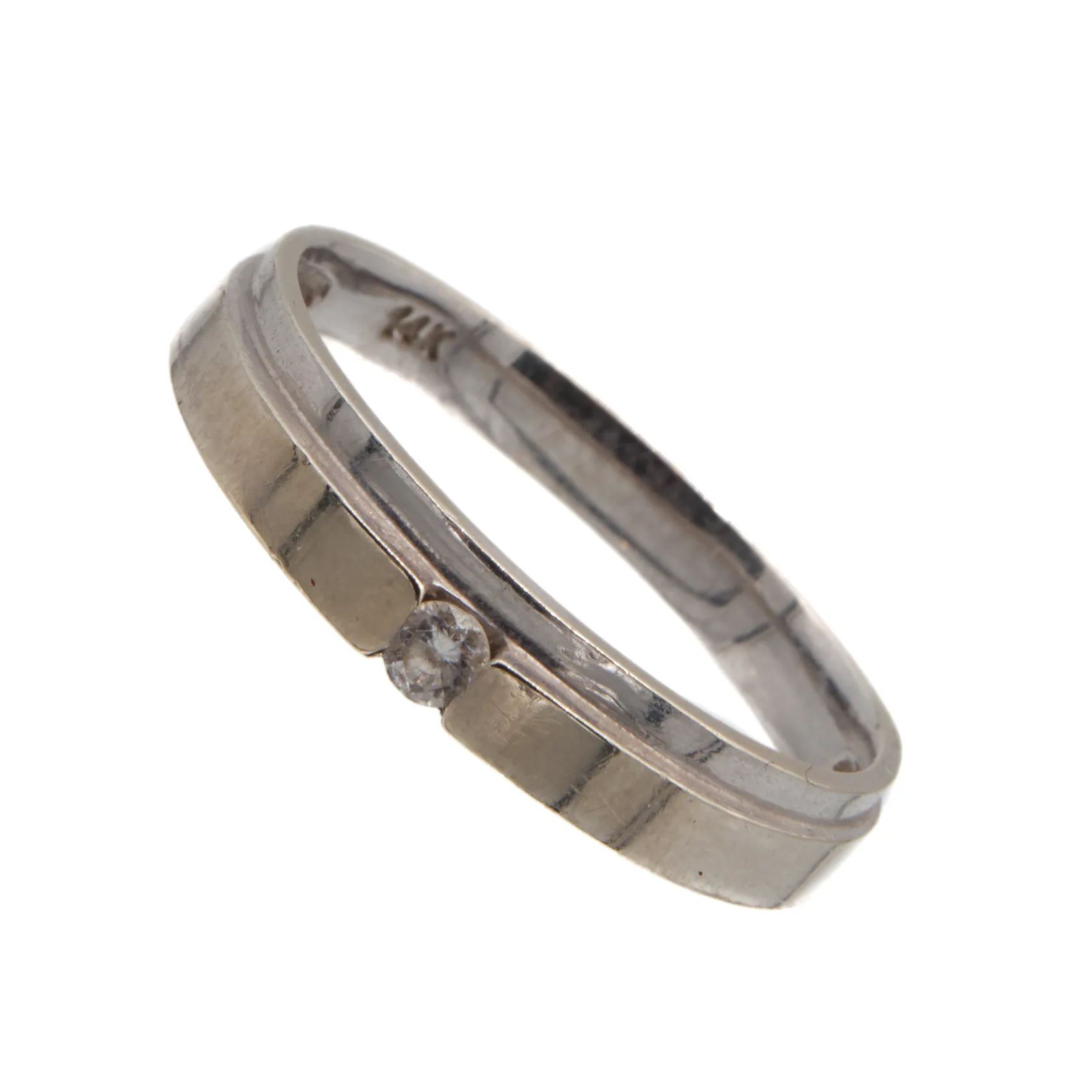 Kivisormus, käytön jälkiä, koko 18, 585 valkokulta, Paino: 1,9 g