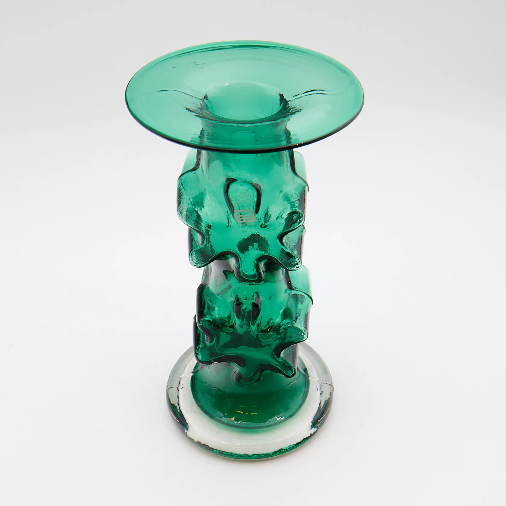 Kynttilänjalka, Kasperi, Riihimäen Lasi Oy, E. t. Siiroinen, signeerattu, korkeus 21cm, Ø 10cm, vihreä, Paino: 0 g