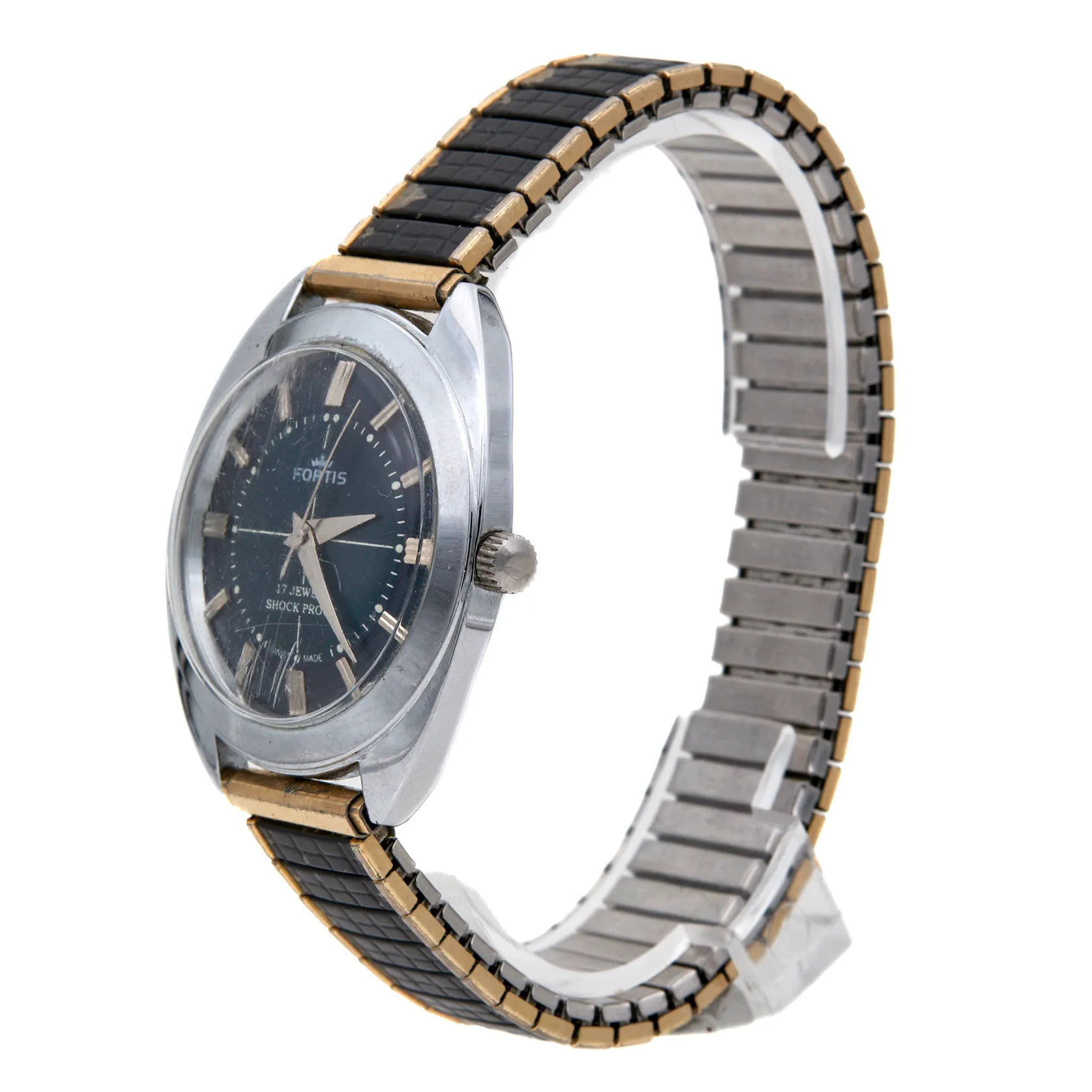 Teräsrannekello, Fortis, 17 jewels, manuaalinen, rungon Ø 39mm, lasissa naarmuja