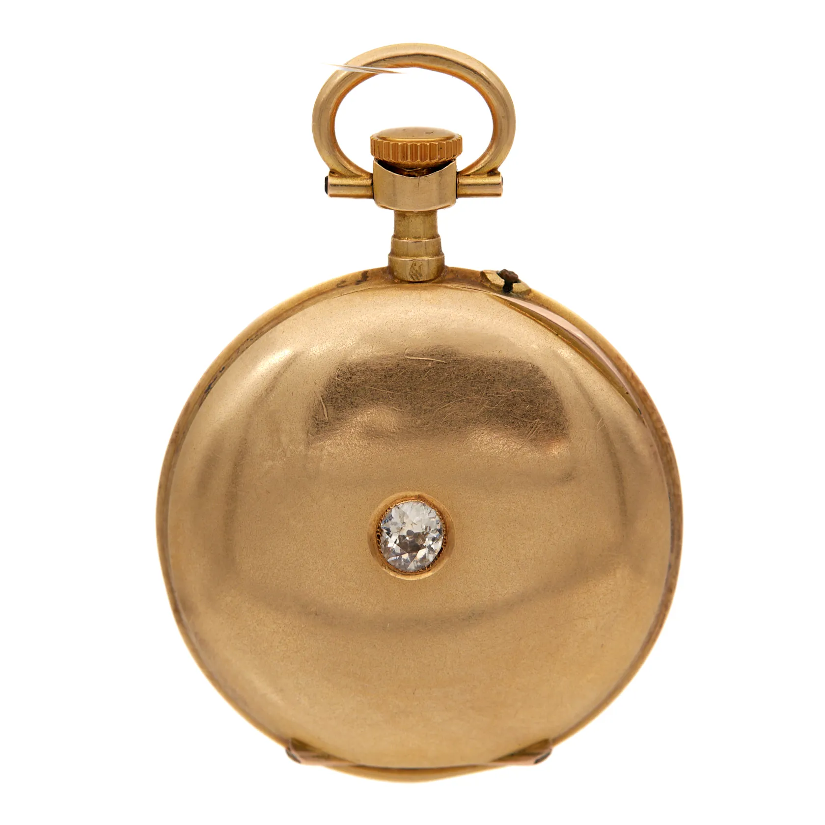 Vihkikello, takannessa lohjennut timantti, Ø 29mm, välikuori metallia, 750br, Paino: 19,6 g