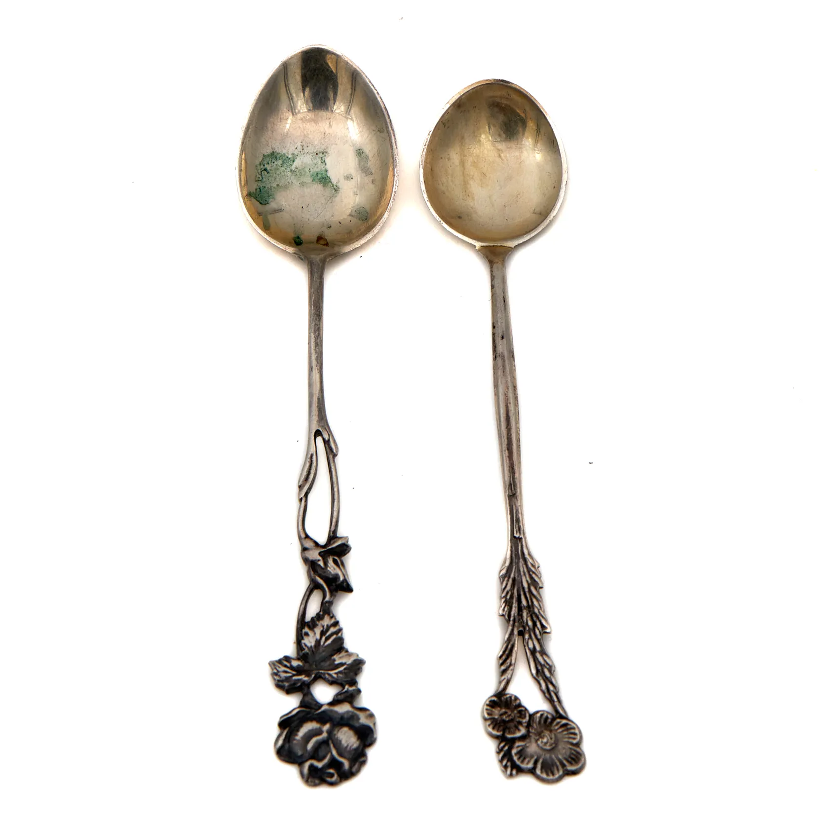 Kaksi kahvilusikkaa, kaiverrettu, 813, Paino: 20 g