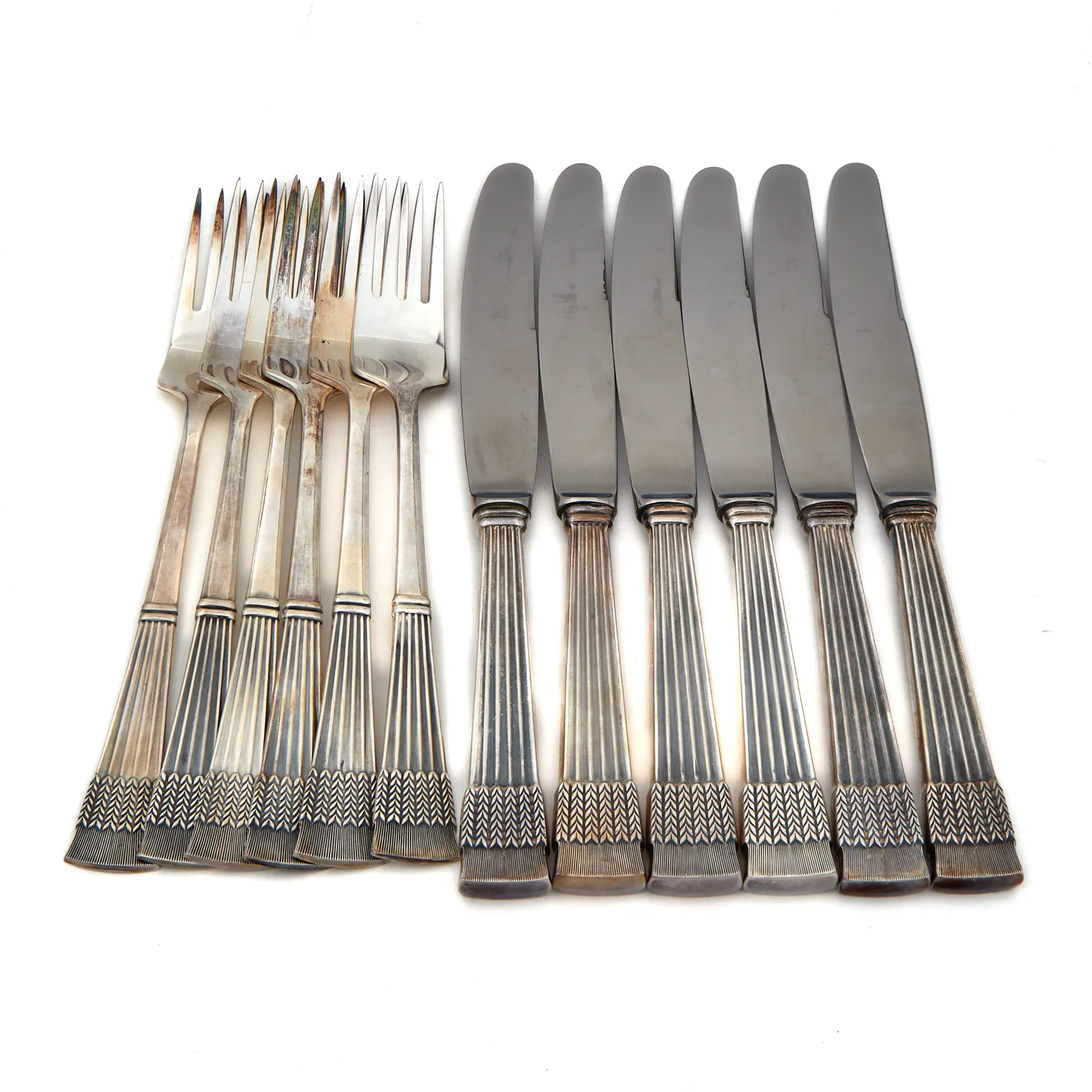 Kuusi haarukkaa ja veistä, Tähkä, pituudet 182mm ja 210mm, AT Tillander, 830br, Paino: 655,6 g