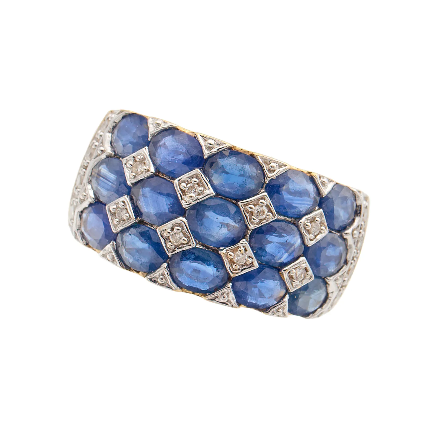 Sinisafiirisormus timanteilla 16xn.0.005c, koko 16¾, pieniä käytön jälkiä, 750br Paino: 4,5 g