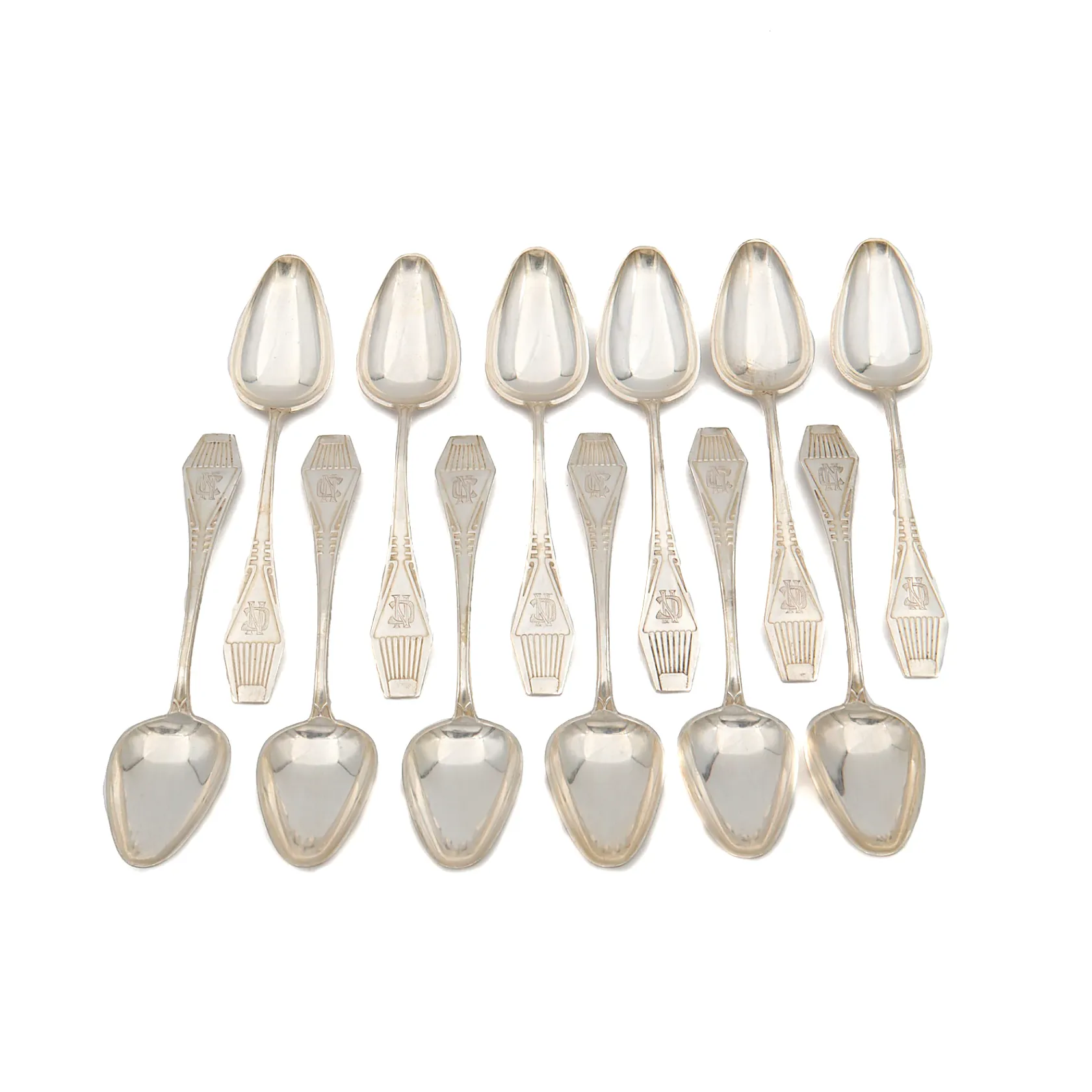 12 kahvilusikkaa, Suomi, pituus 125mm, kaiverrettu, Suomen Kultaseppä Oy, valmistettu Turussa 1918, 813, Paino: 245,6 g