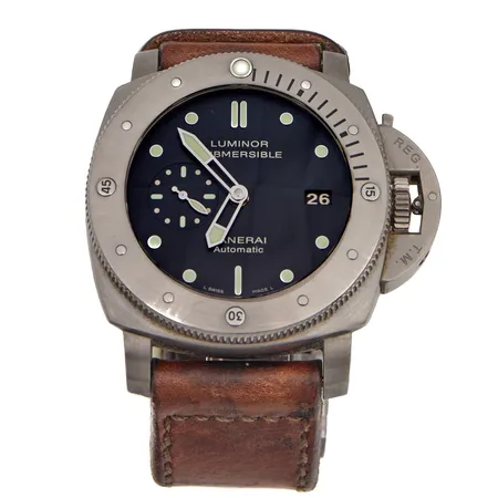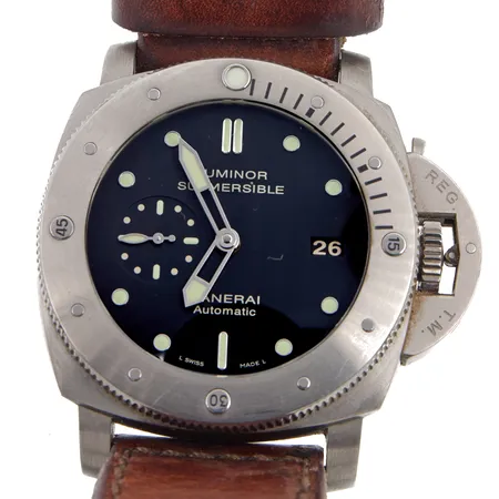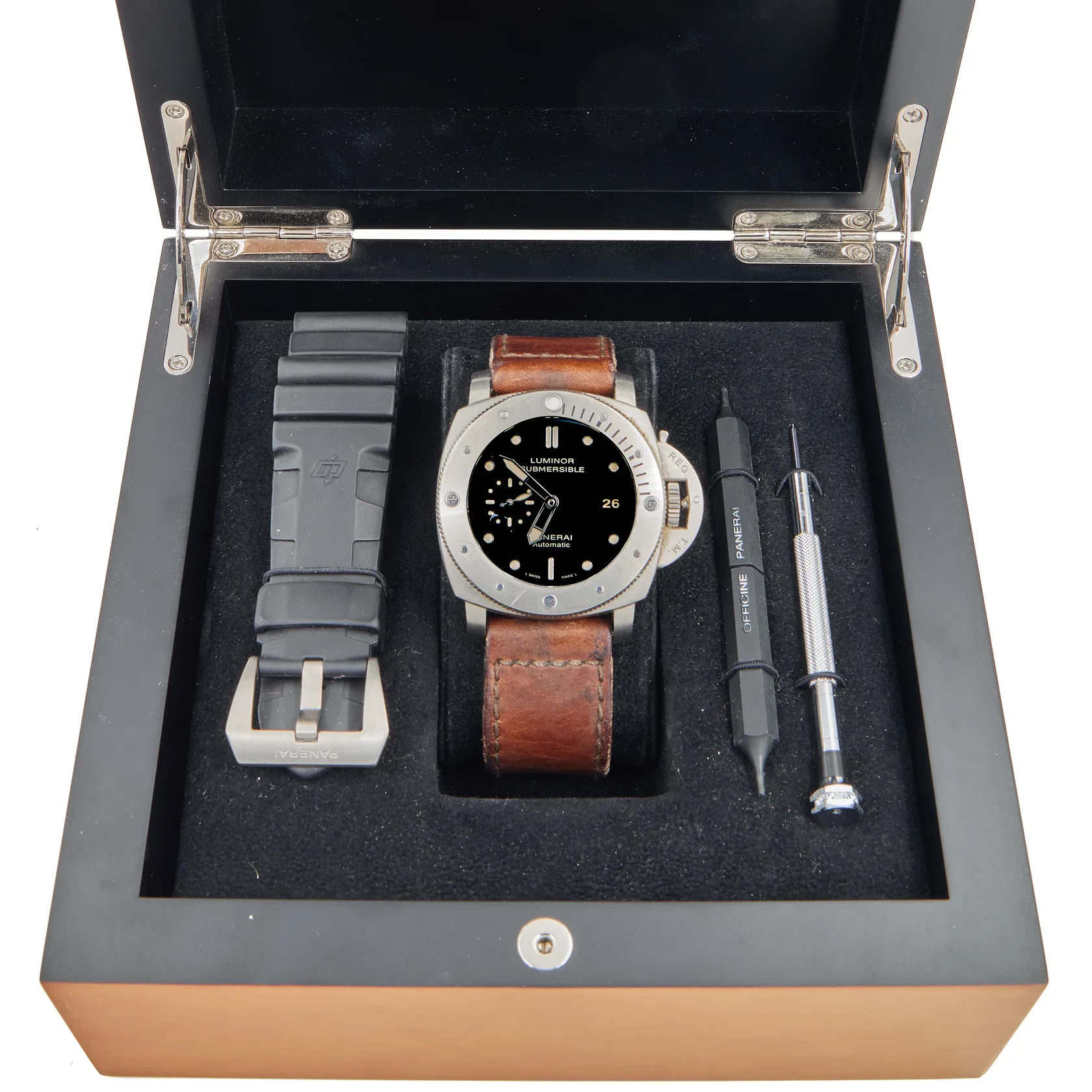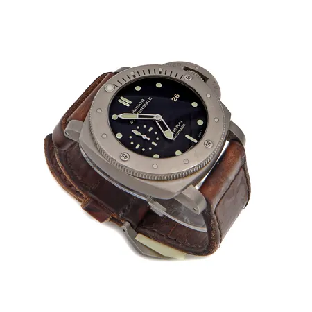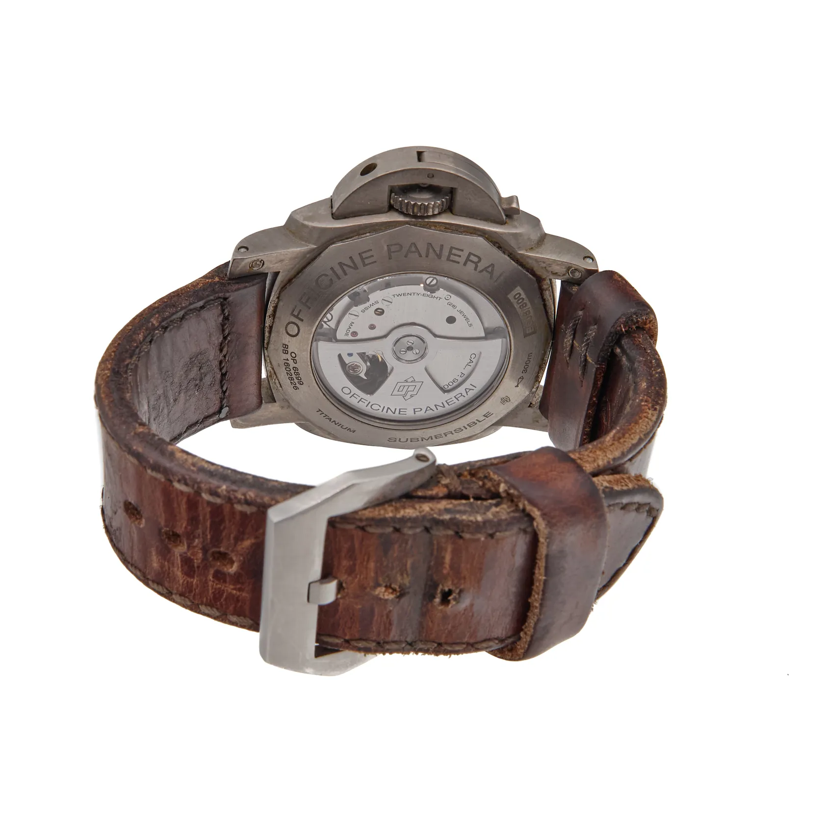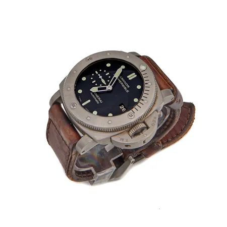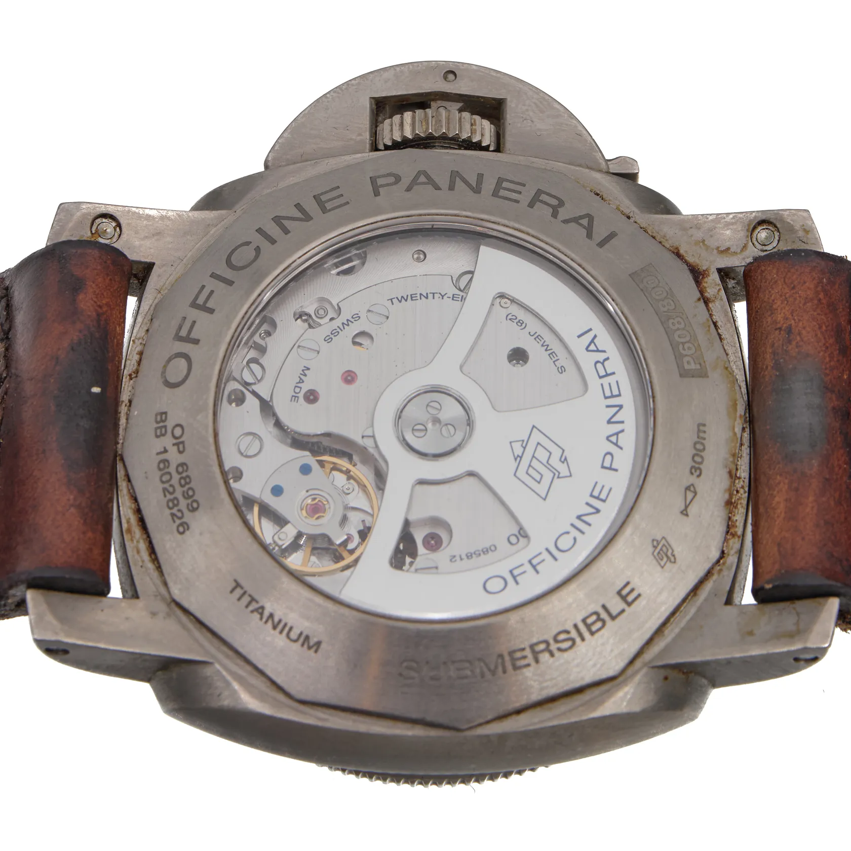 Rannekello Panerai Luminor Submersible, Automatic Titanium, ref.no PAM00305 / OP6899, Cal. P.9000, rungon Ø 46mm, käytön jälkiä nahkahihnassa, rungossa naarmuja, laatikko, kumi sekä nahkahihna