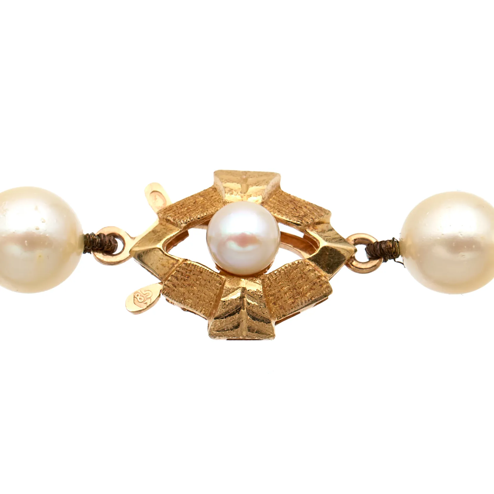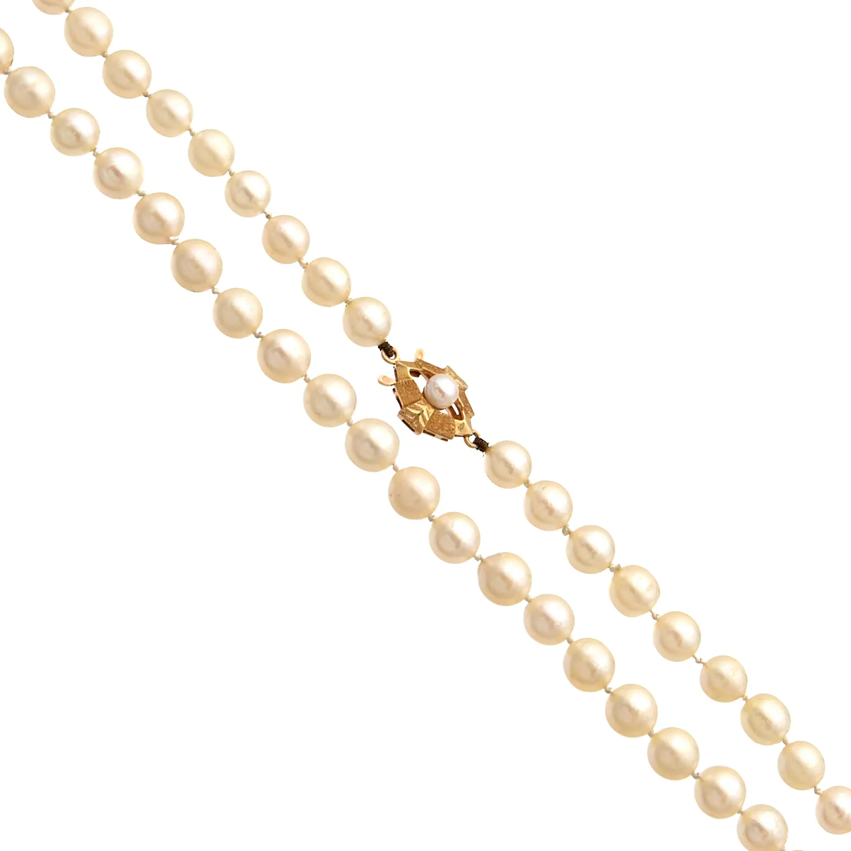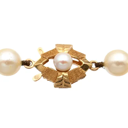 Helmikaulanauha kultalukolla, pituus 49cm, helmien Ø 6,5-7mm, lukko 585br, Paino: 27,9 g
