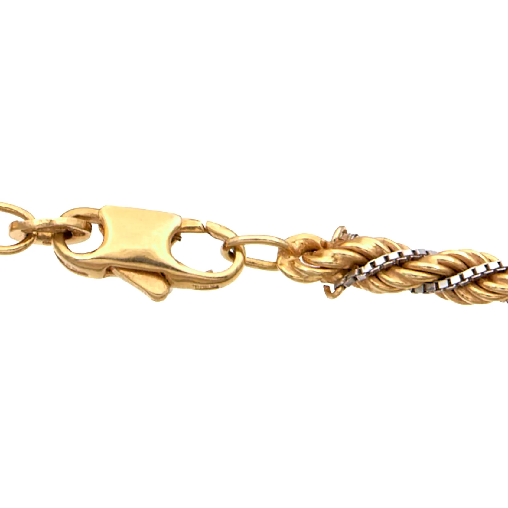 Cordell-kaulaketju, pituus 46cm, venetsiaketjun juotos pala katkennut, 585 kelta- ja valkokultaa, Paino: 9,6 g