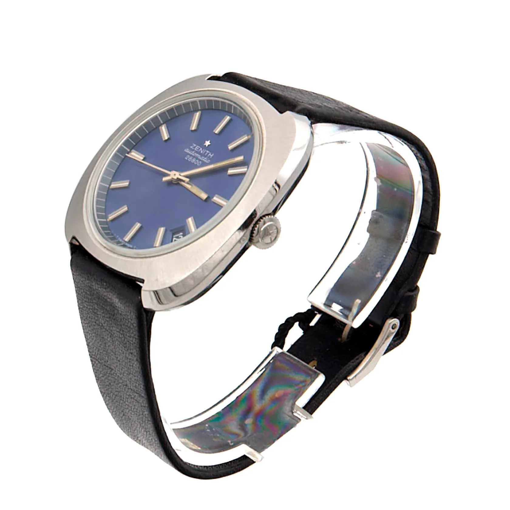 Teräsrannekello Zenith 28800 nahkarannekkeella, automaatti, Ø 39mm, sarjanumero 01.1240.290., caliberi 2562PC, 23-kivinen, pituus 160-200mm.