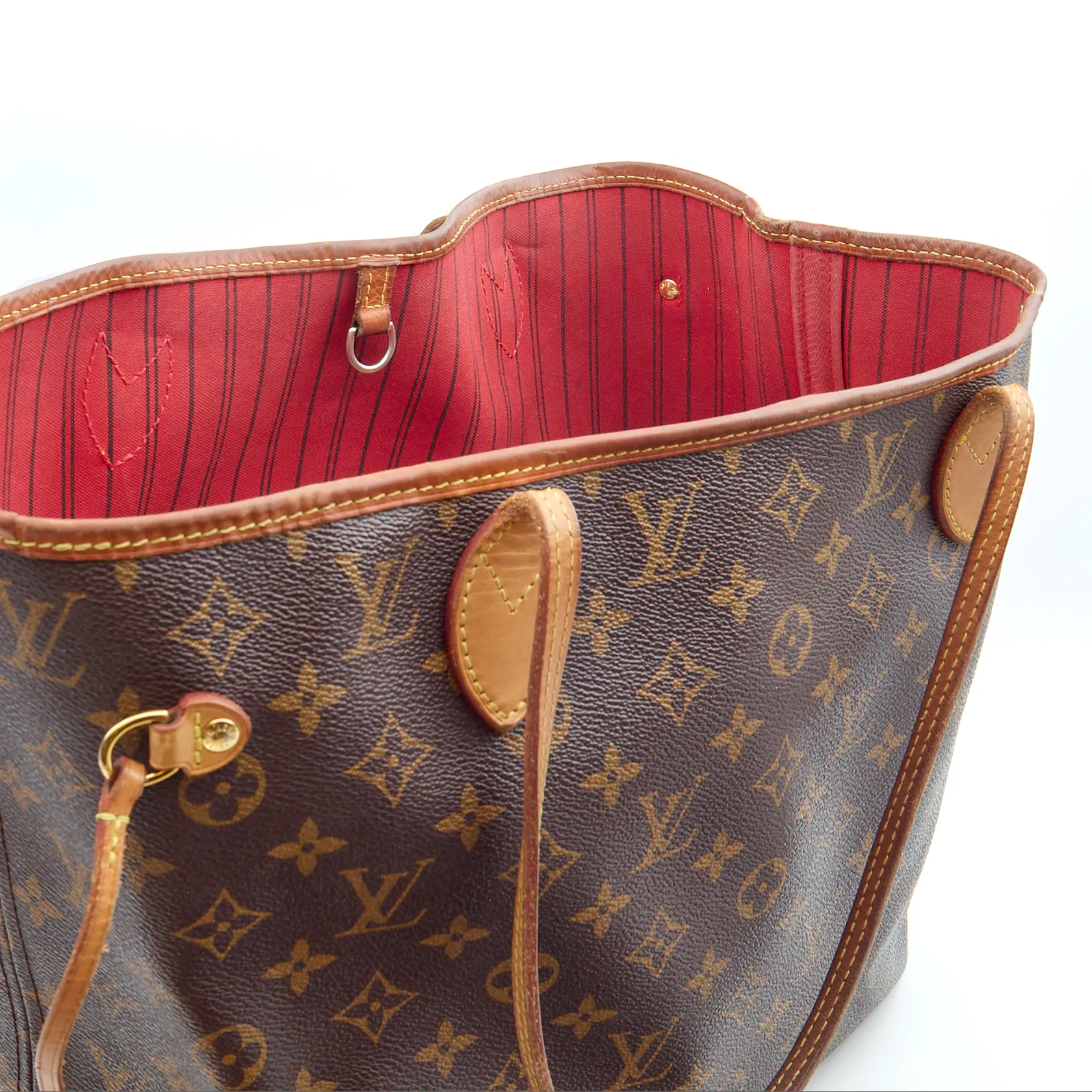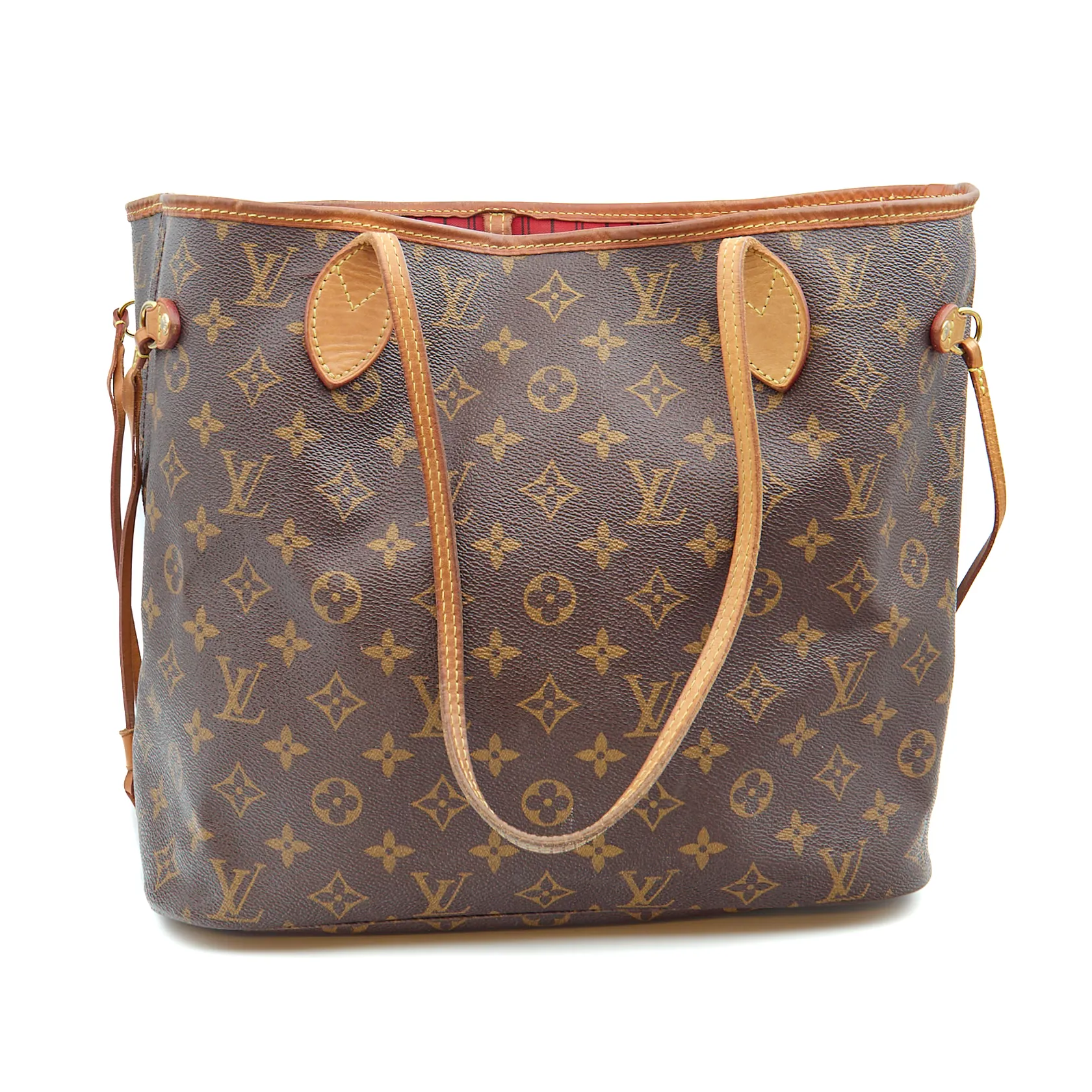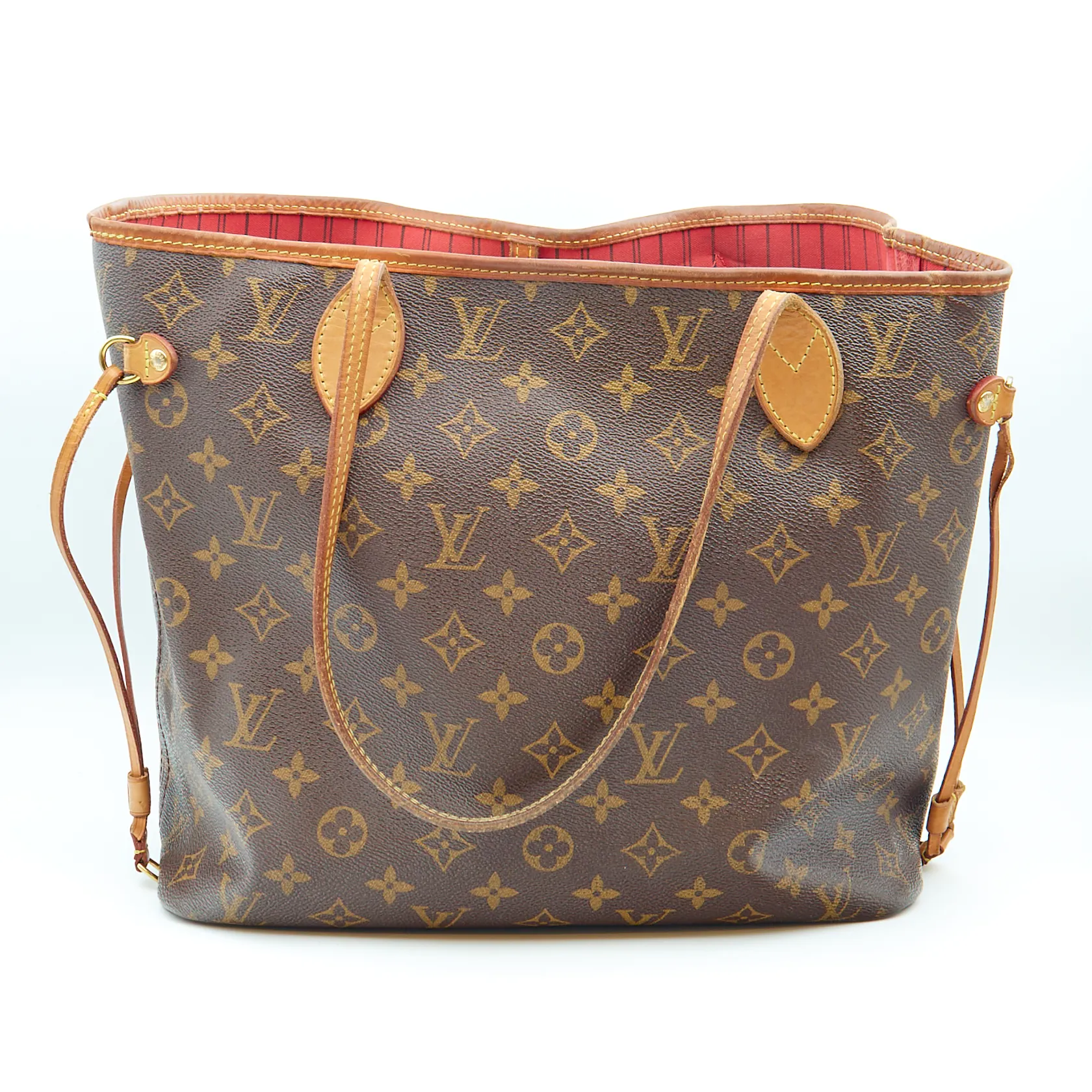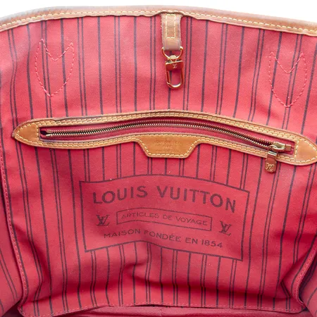Käsilaukku Louis Vuitton, Neverfull MM, Monogram Canvas Cerise, M41177, Made in France, SR4126, mukana sisäpussukka 25x15cm, LA3196, Made in USA, kulumaa nahka- ja metalliosissa, sisäosassa tahroja, ostokuitti LV Helsinki 11/2016.