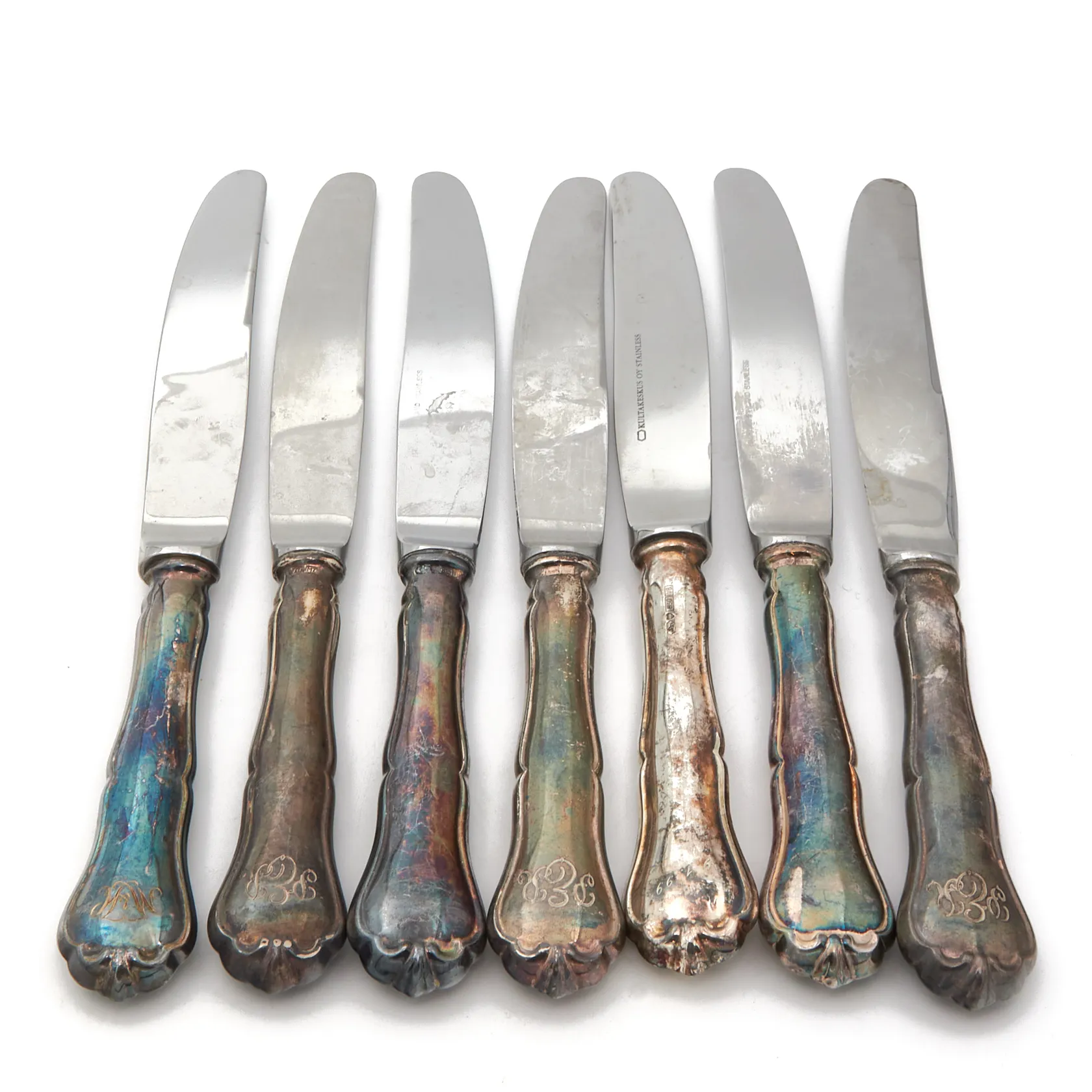 Seitsemän ruokaveistä, Chippendale, kaiverrettu, pituus 205mm, 813br, Paino: 446,5 g