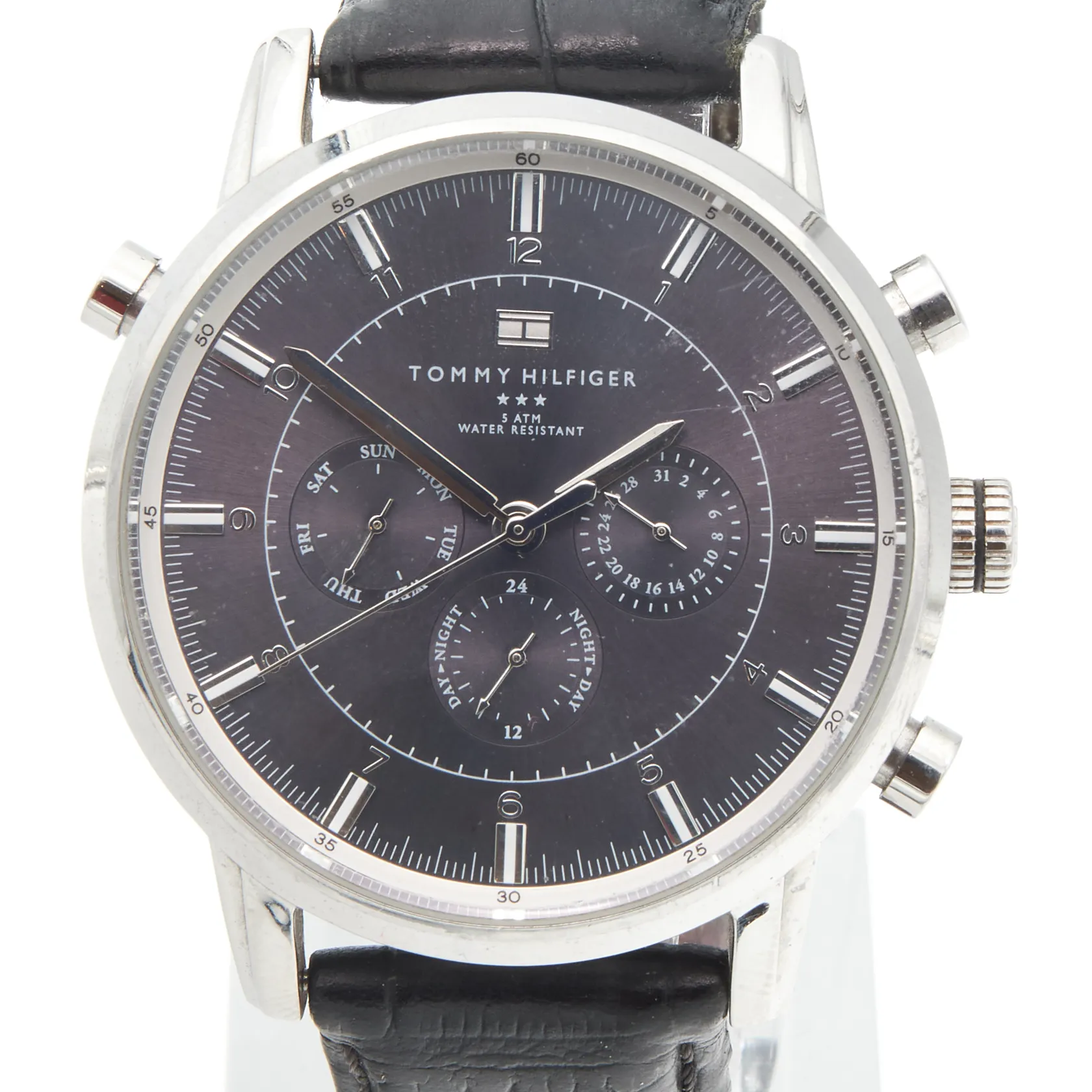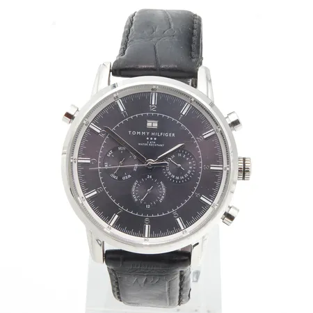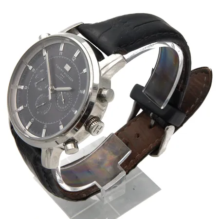 Teräsrannekello Tommy Hilfiger, ref: TH.191.1.14.1316, käytön jälkiä, quartz, rungon Ø44mm, ranneke viallinen, nahkarannekkeen pituus 175-220mm,